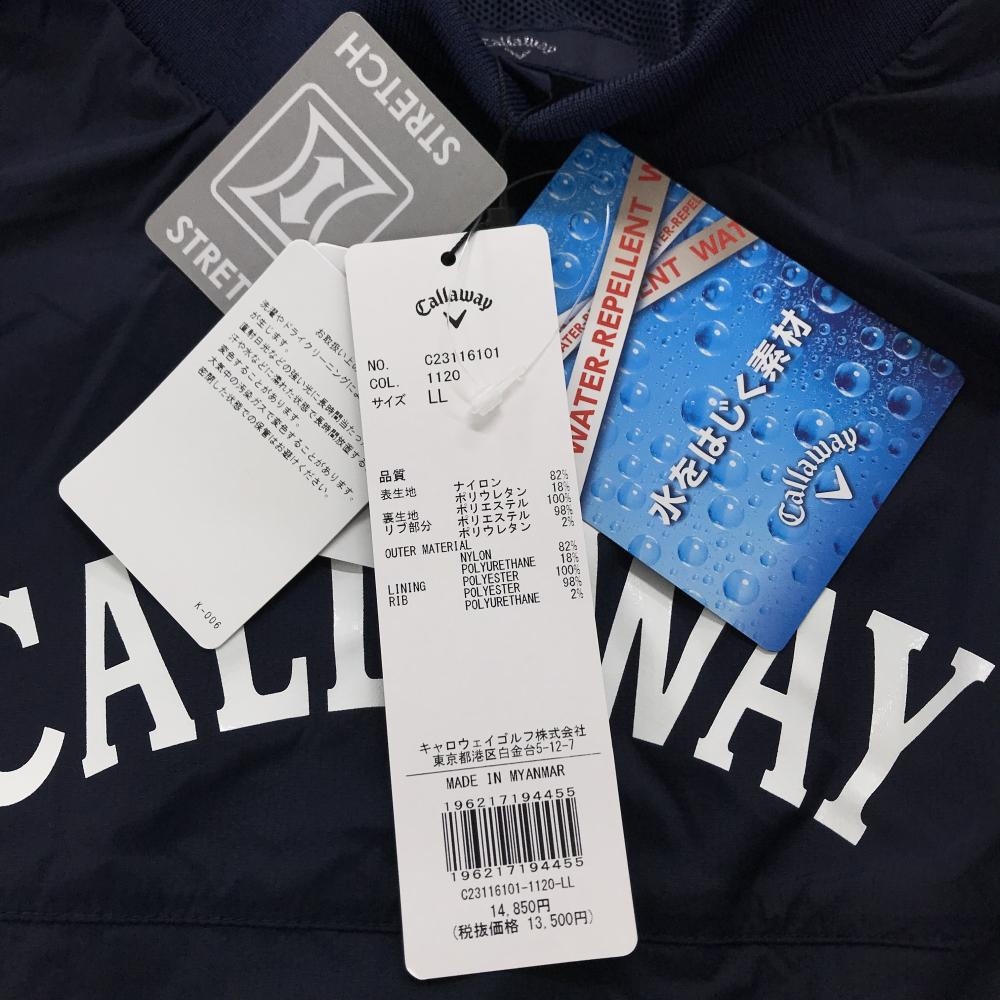 【新品】キャロウェイ 半袖ハイネックスニード ネイビー ロゴ白 はっ水 ストレッチ ブルゾン メンズ LL ゴルフウェア Callaway