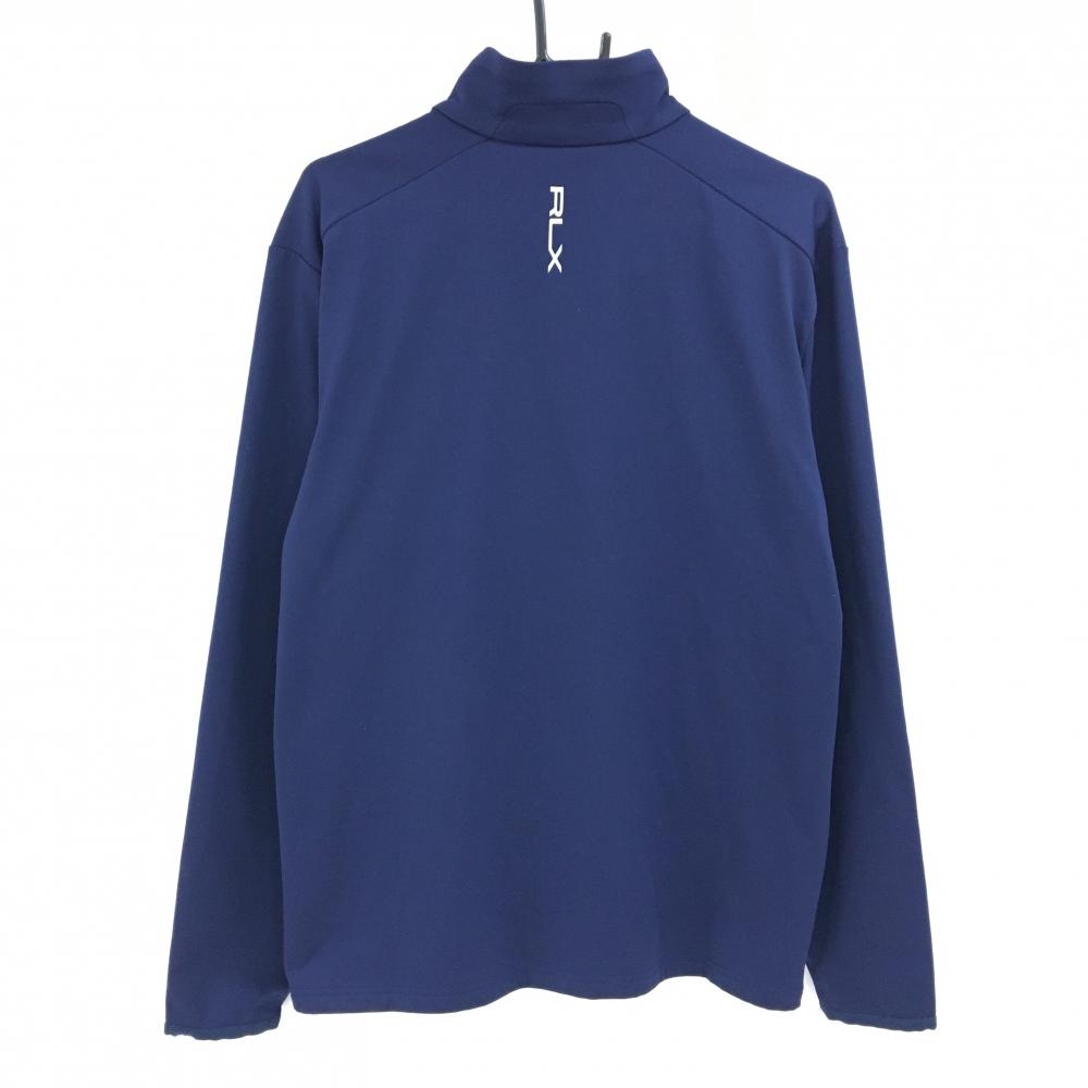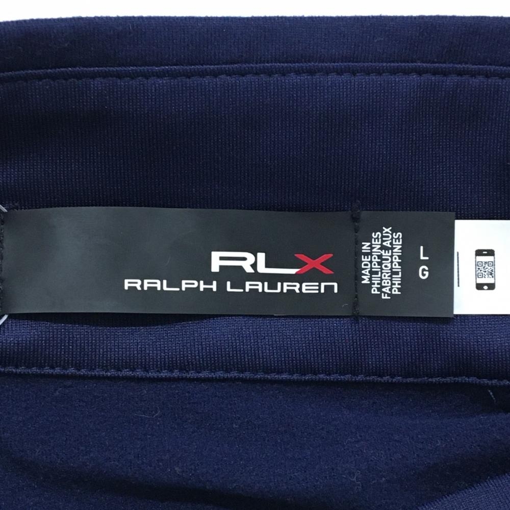 【美品】RLXラルフローレン 長袖ハイネックシャツ ネイビー×スモーキーグリーン系 ハーフジップ メンズ LG ゴルフウェア Ralph Lauren