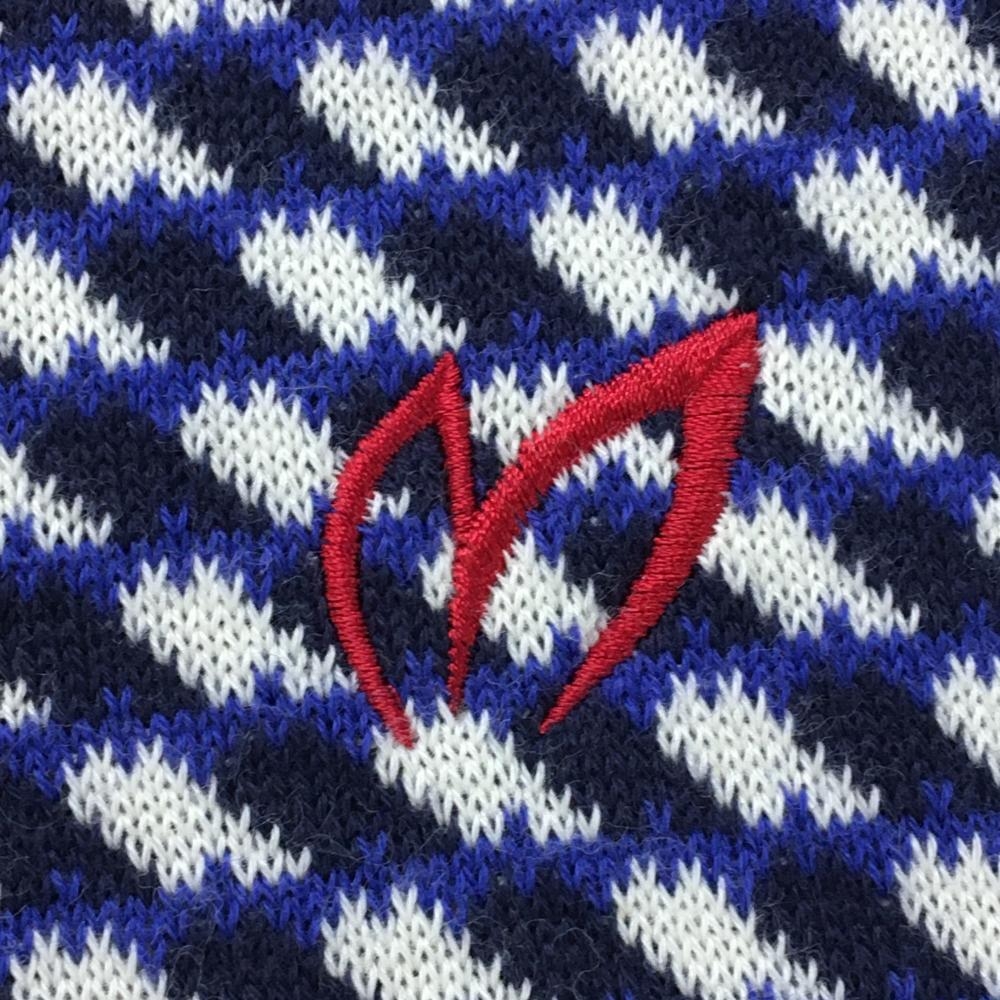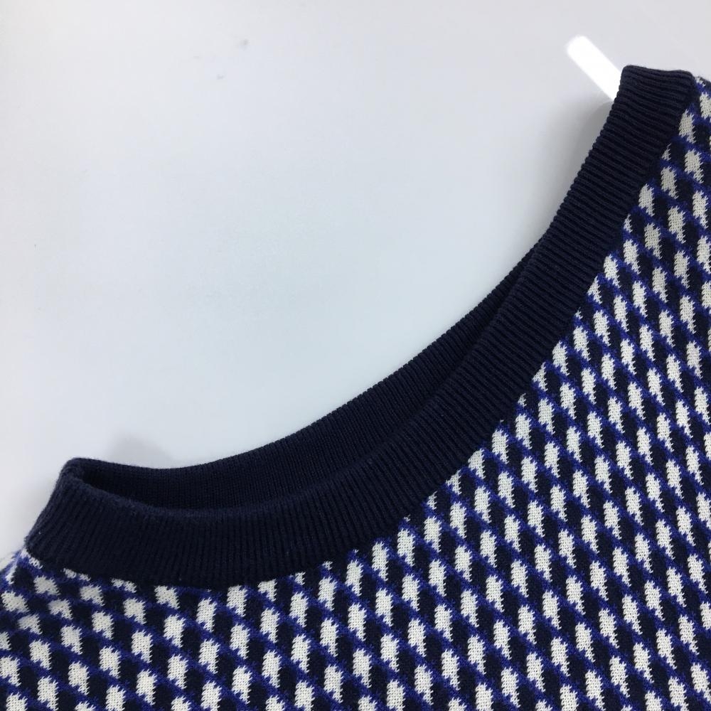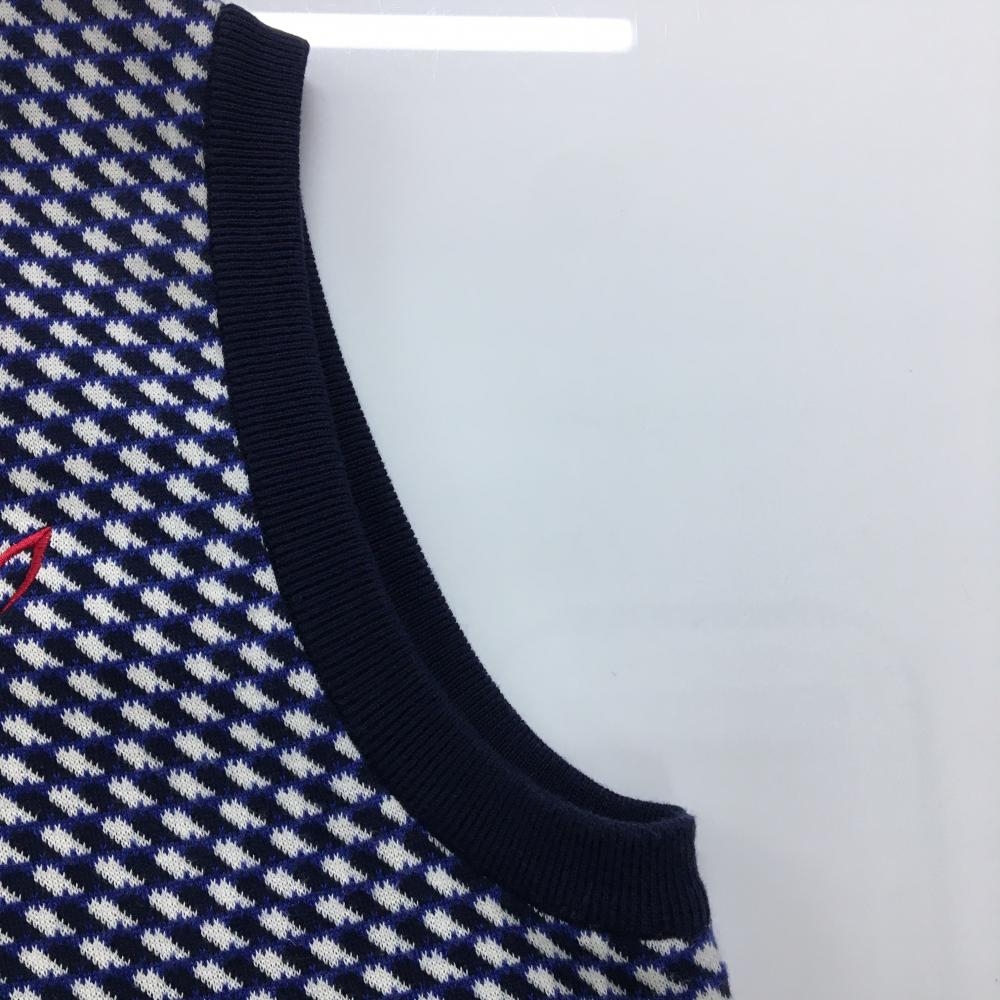 【美品】マスターバニー ニットベスト ネイビー×白 総柄 胸ロゴ コットン100% メンズ 5(L) ゴルフウェア MASTER BUNNY EDITION
