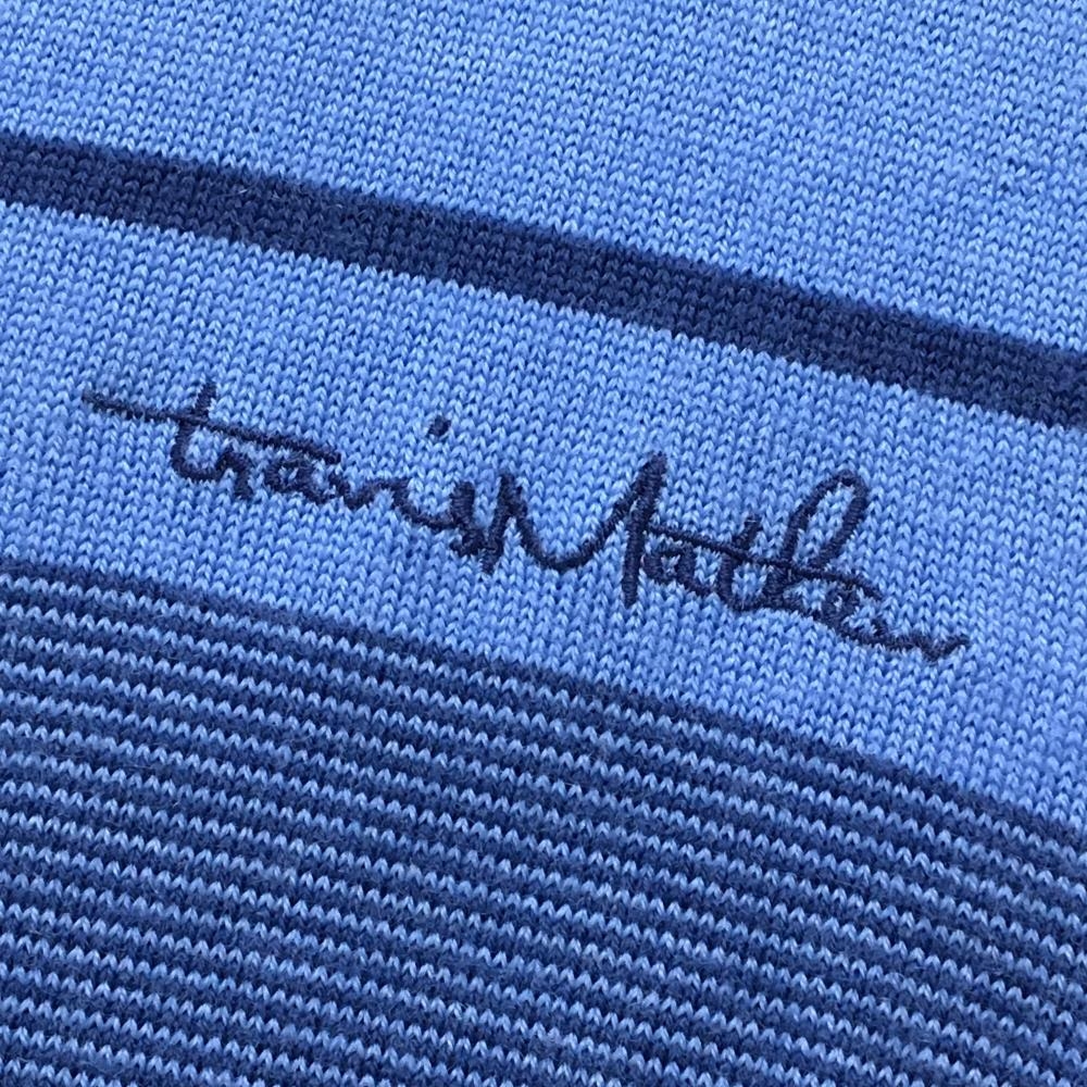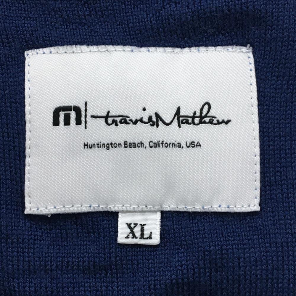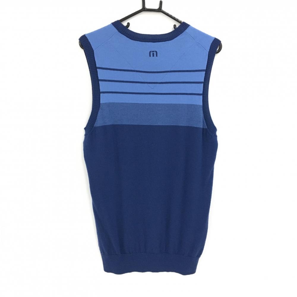 【美品】トラヴィスマシュー ニットベスト ネイビー系×ライトブルー系 一部ボーダー メンズ XL ゴルフウェア TravisMathew