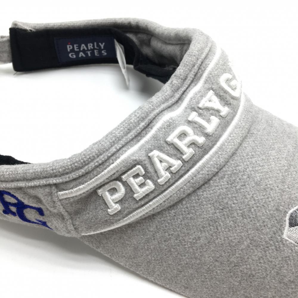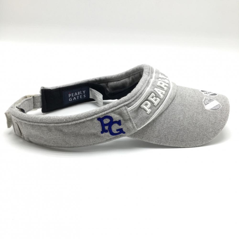 【美品】パーリーゲイツ サンバイザー ライトグレー×白 立体ロゴ刺しゅう 汗取りパッド付 FR ゴルフウェア PEARLY GATES