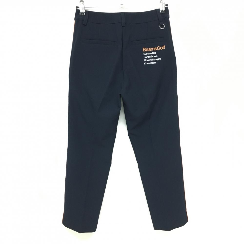 【超美品】ビームスゴルフ パンツ ネイビー×オレンジ サイドライン ロゴプリント レディース M ゴルフウェア BEAMS GOLF