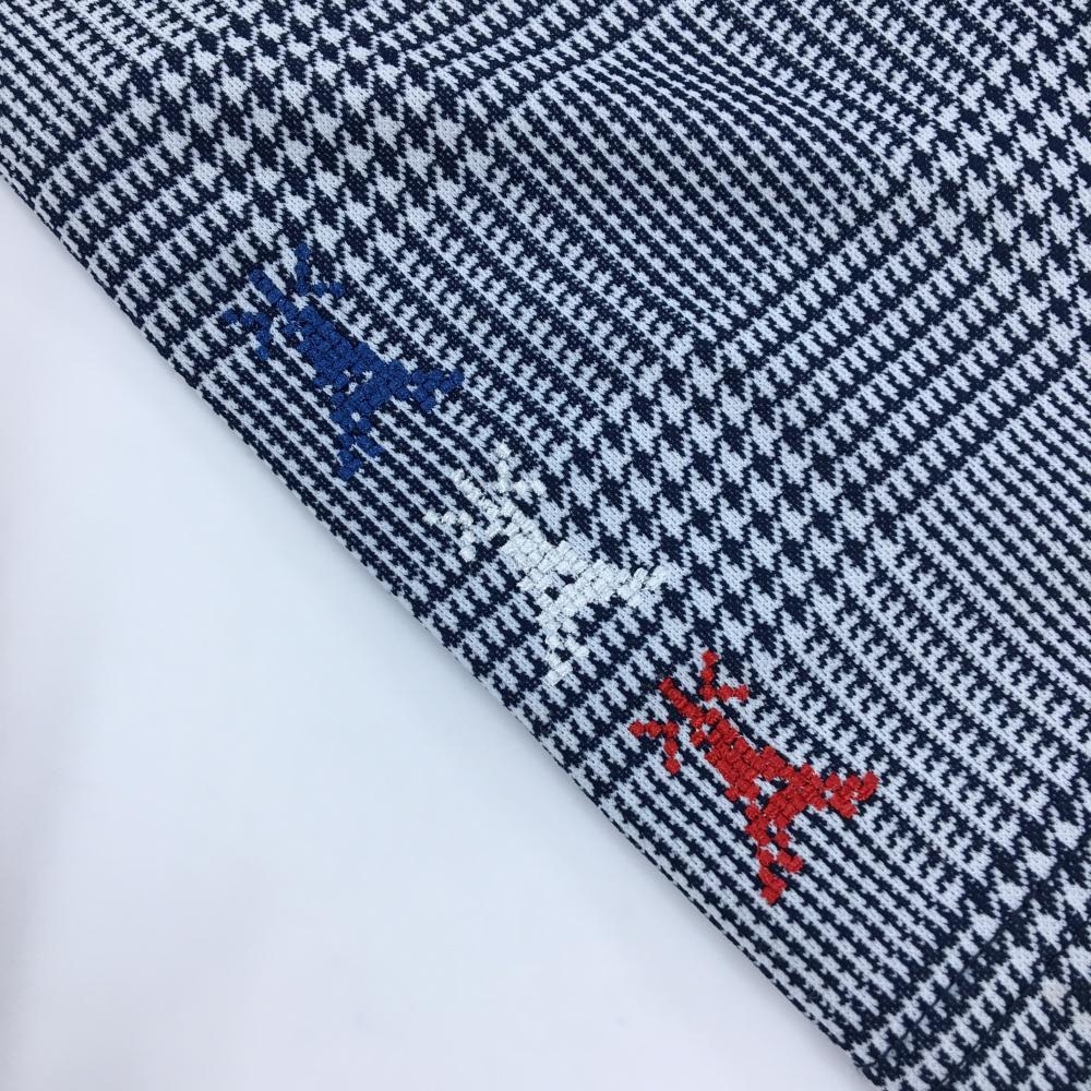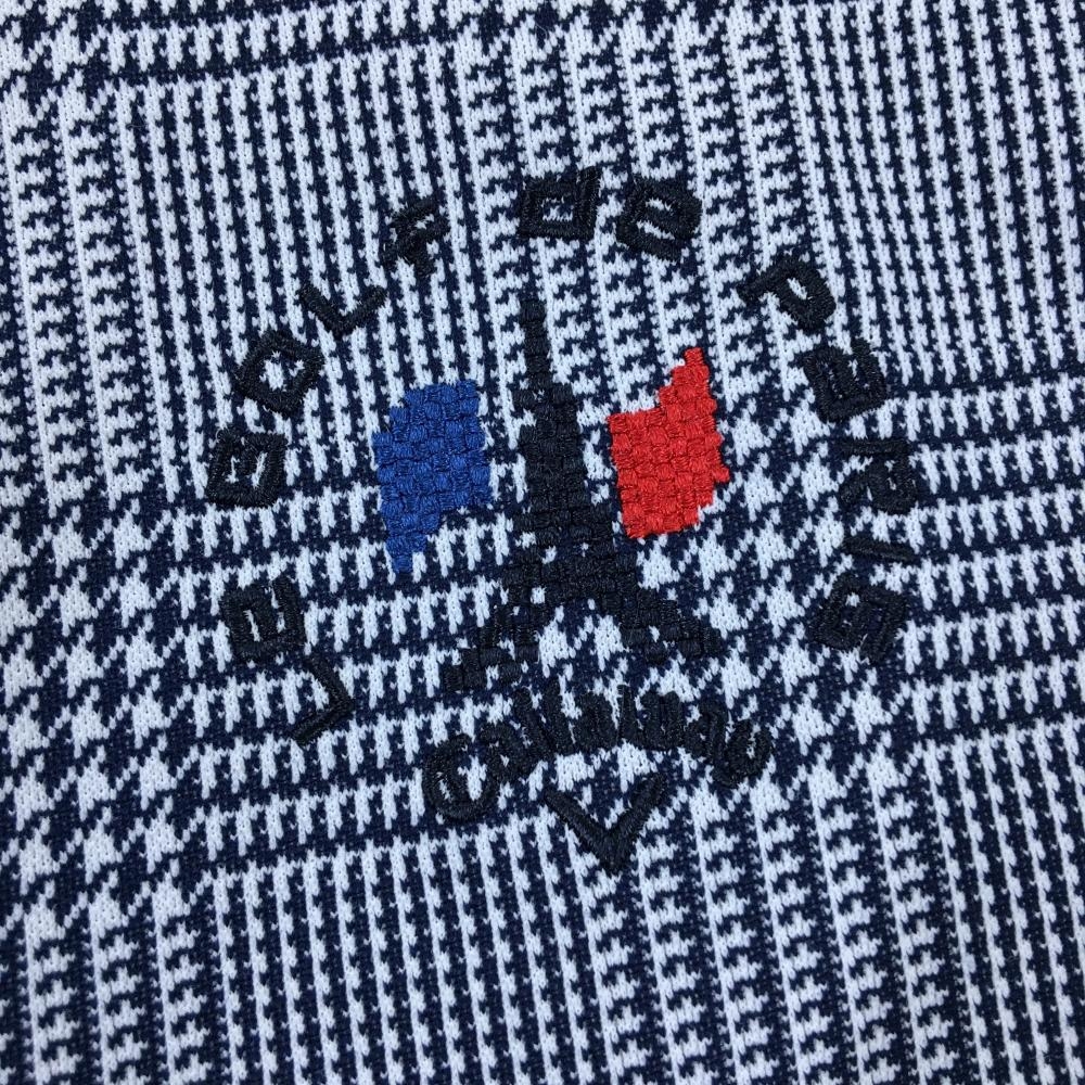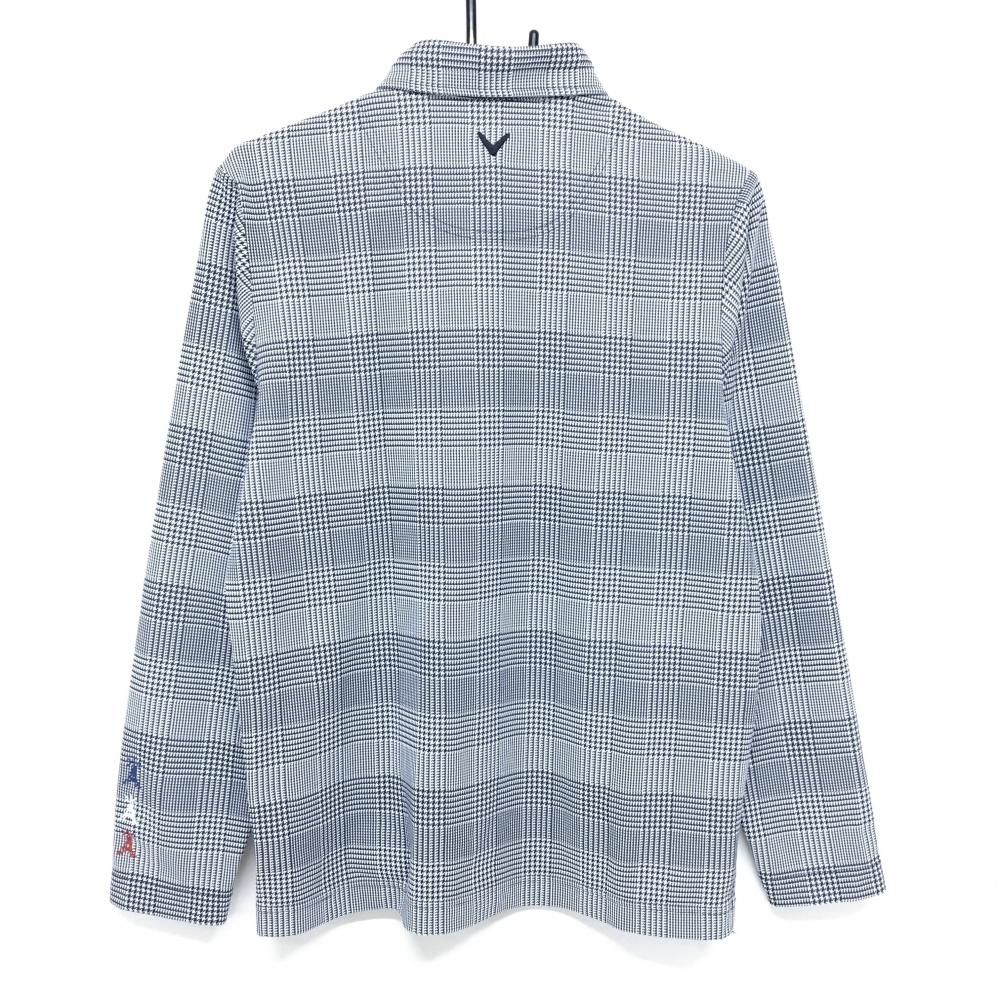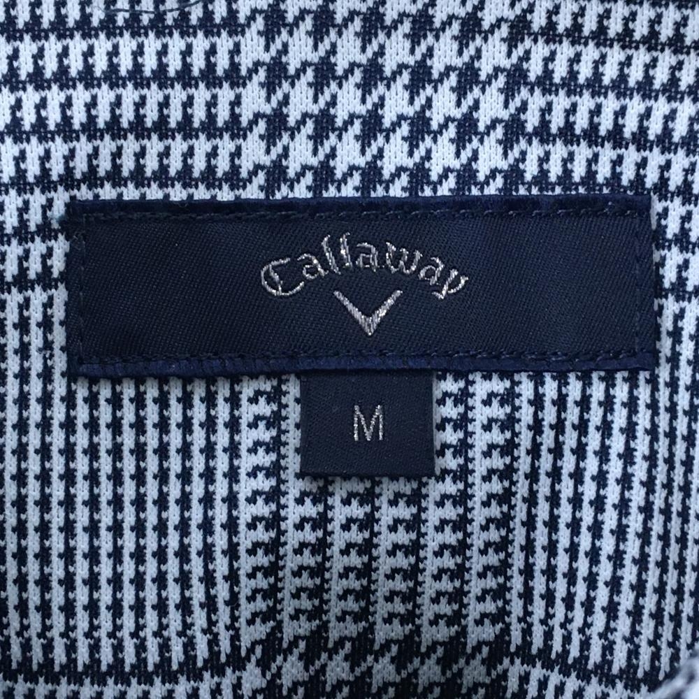 【超美品】キャロウェイ 長袖ポロシャツ 白×ネイビー グレンチェック ボタンダウン メンズ M ゴルフウェア Callaway