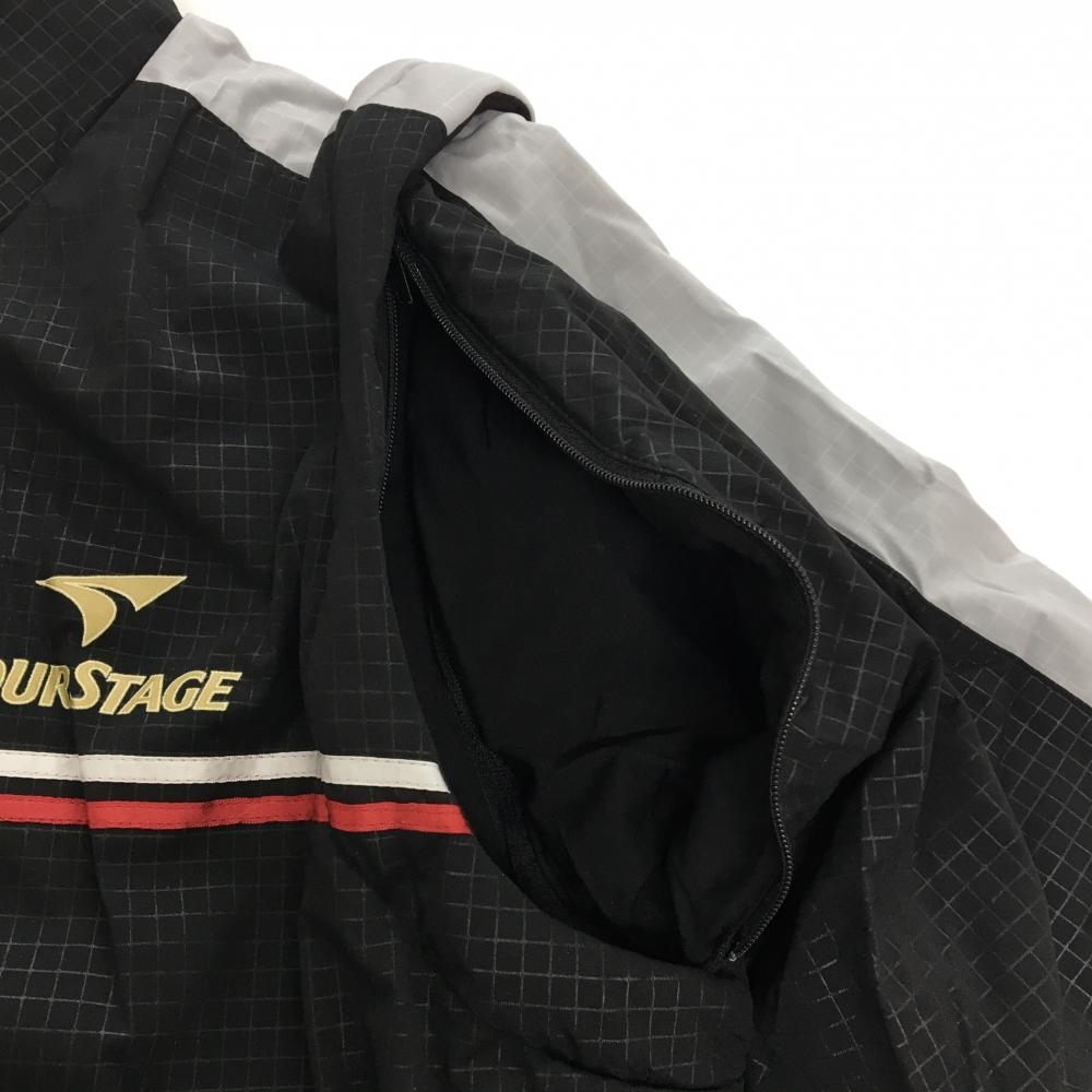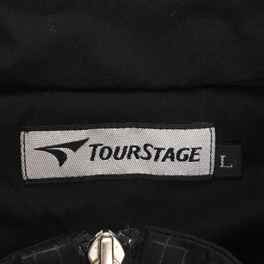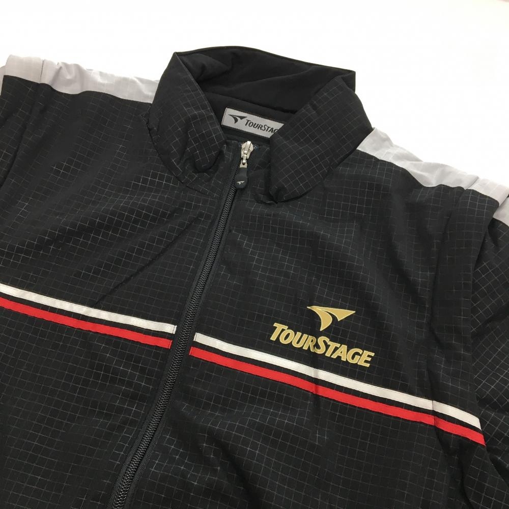 【超美品】ツアーステージ 2WAY中綿ジャケット 黒×グレー 格子柄地模様 ロゴ刺しゅう 袖着脱可 メンズ L ゴルフウェア TOURSTAGE