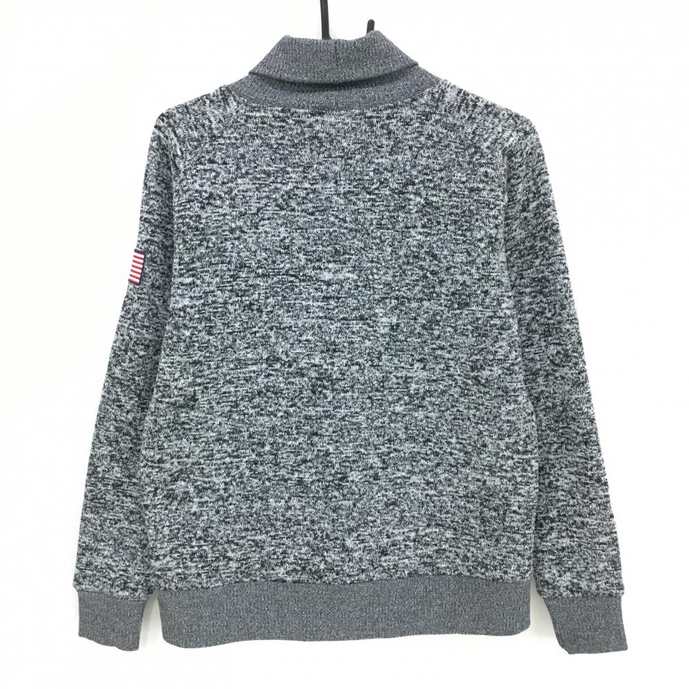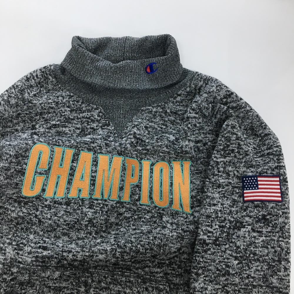 【超美品】チャンピオン タートルネックセーター 杢黒調×グレー ネックロゴ 裏起毛 星条旗ワッペン レディース L ゴルフウェア Champion