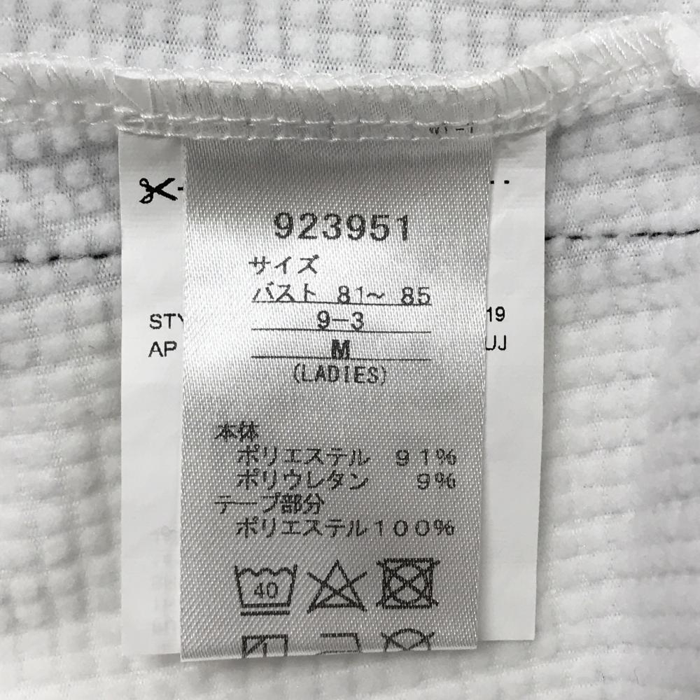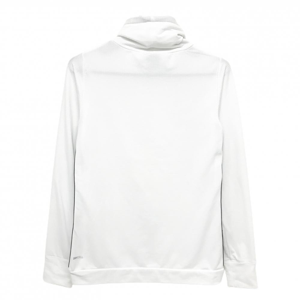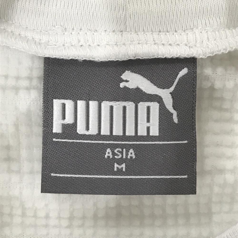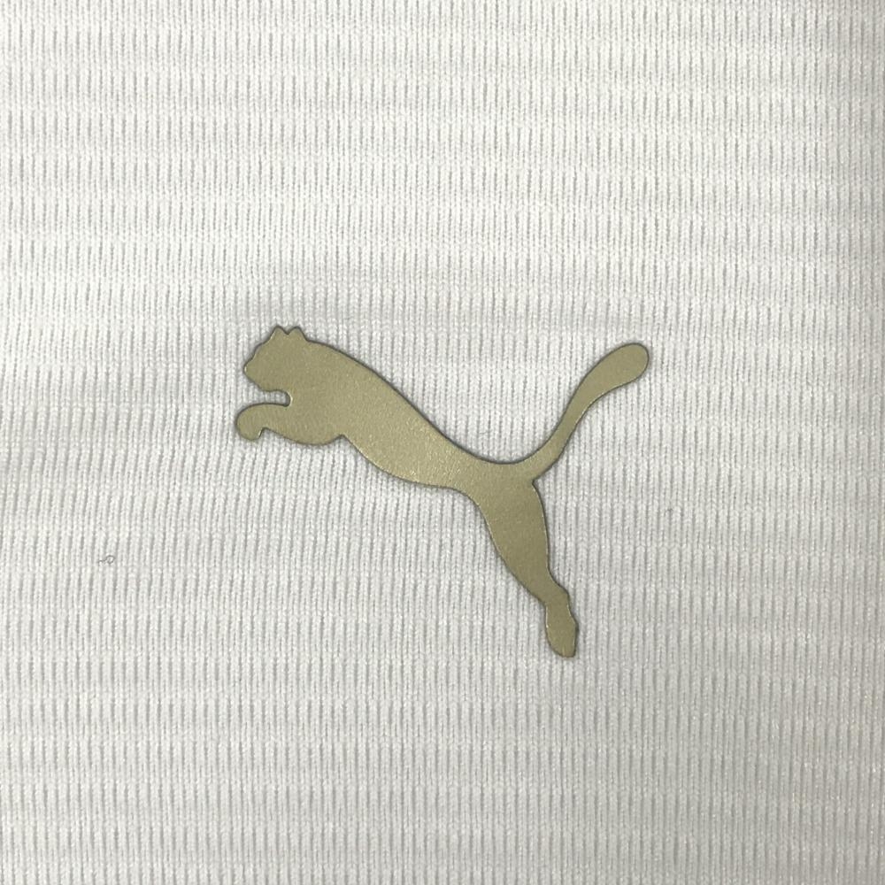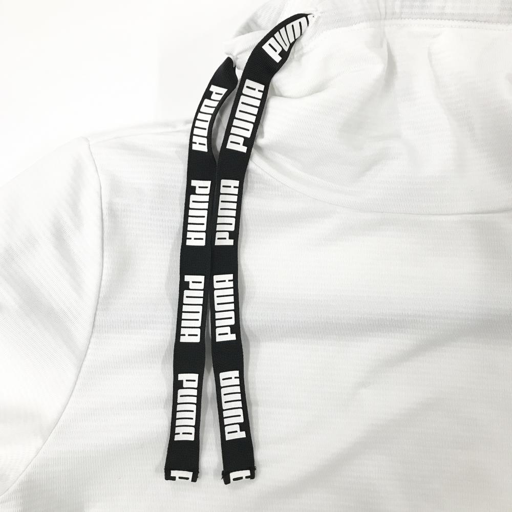 【美品】プーマ 長袖ハイネックシャツ 白×黒 ボーダー地模様 裏微起毛 サイドロゴライン ネック調節紐 レディース M ゴルフウェア PUMA