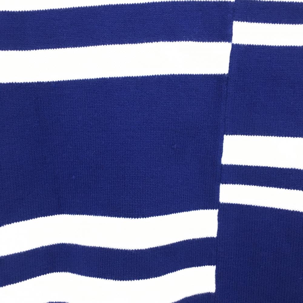 【美品】デルソル タートルネックセーター ブルー×白 ボーダー調 レディース L ゴルフウェア DELSOL