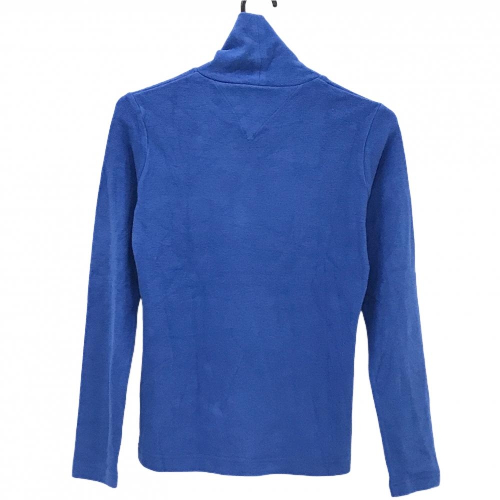 【美品】トミーヒルフィガーゴルフ 長袖タートルネックシャツ ブルー×黒 表微起毛 レディース M ゴルフウェア Tommy Hilfiger Golf