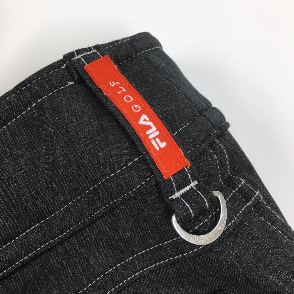 【美品】フィラゴルフ パンツ 杢ダークグレー ステッチ 裏起毛 スナップボタン レディース M ゴルフウェア FILA GOLF