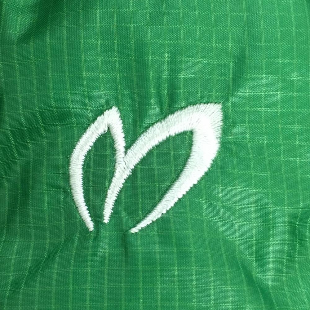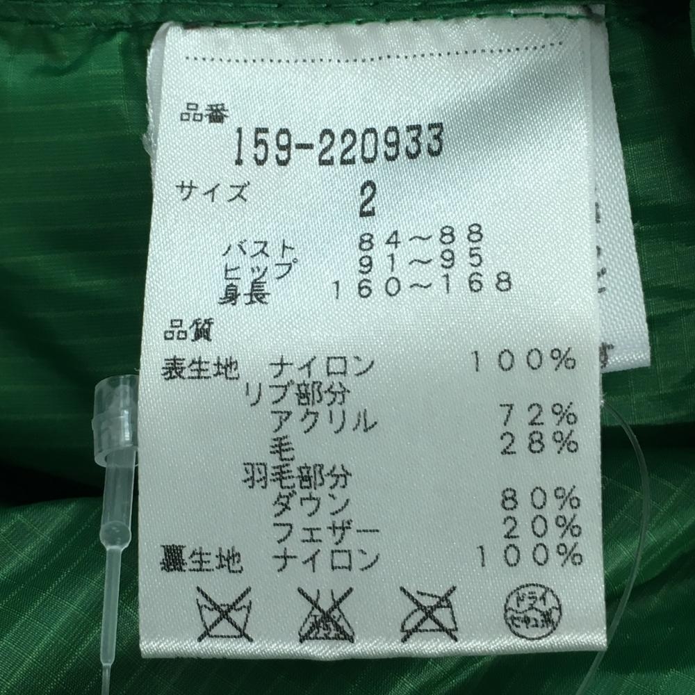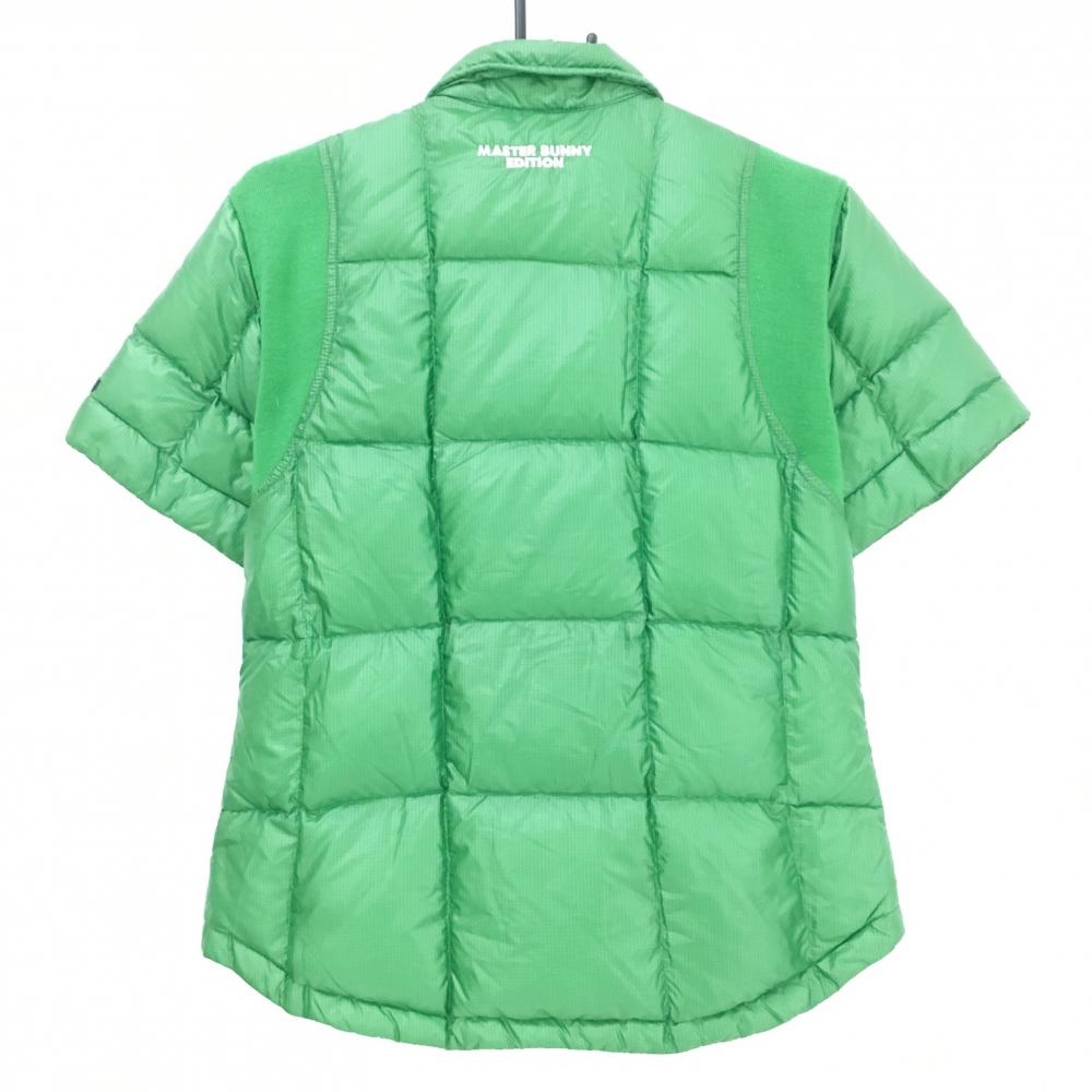 【超美品】マスターバニー 襟付き半袖ダウンジャケット グリーン 格子柄地模様 軽量 レディース 2(L) ゴルフウェア MASTER BUNNY EDITION