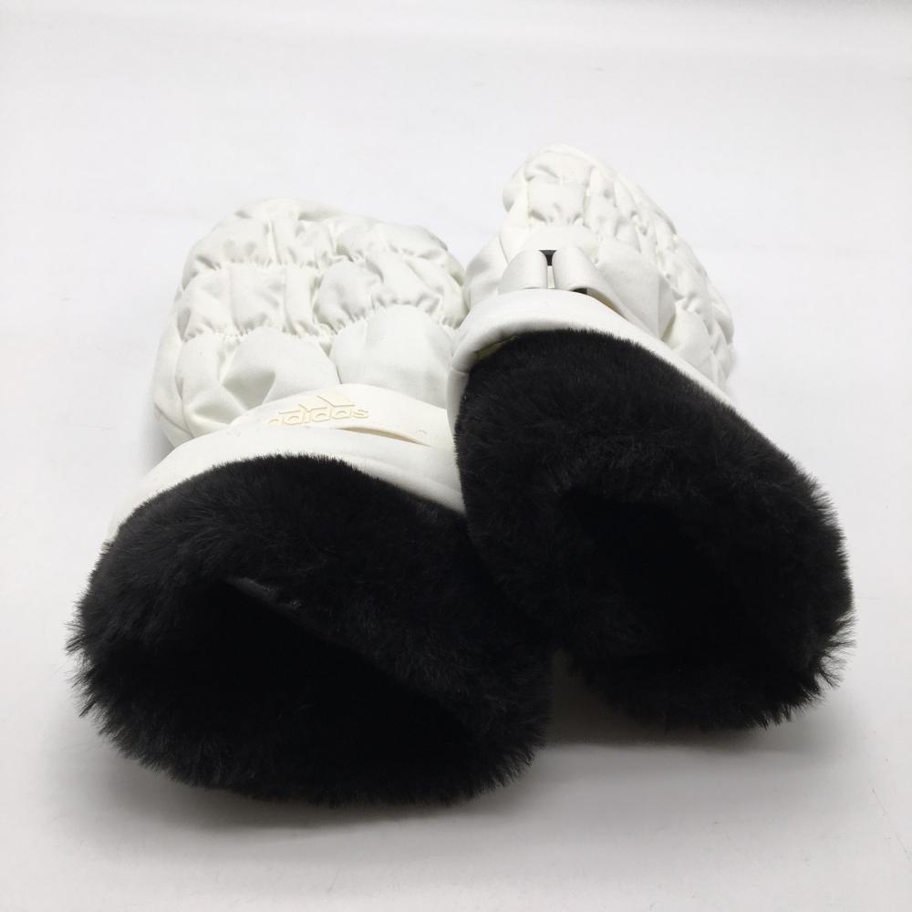 【美品】アディダス 手袋 白×黒 一部ファー 滑り止め付 ミトングローブ レディース NS ゴルフウェア adidas