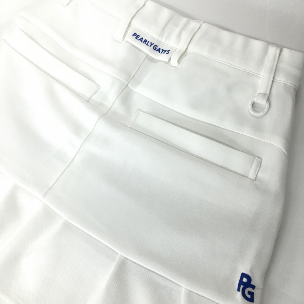 【新品】パーリーゲイツ スカート 白×ブルー ロゴプリント ウエスト紐 レディース 0(S) ゴルフウェア PEARLY GATES