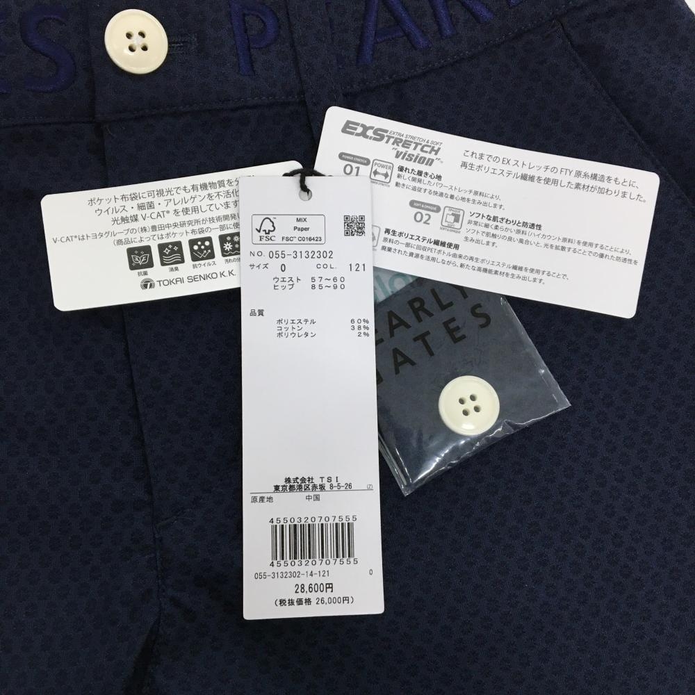 【新品】パーリーゲイツ ショートパンツ ネイビー 地模様 ウエストロゴ刺しゅう ストレッチ レディース 0 ゴルフウェア PEARLY GATES