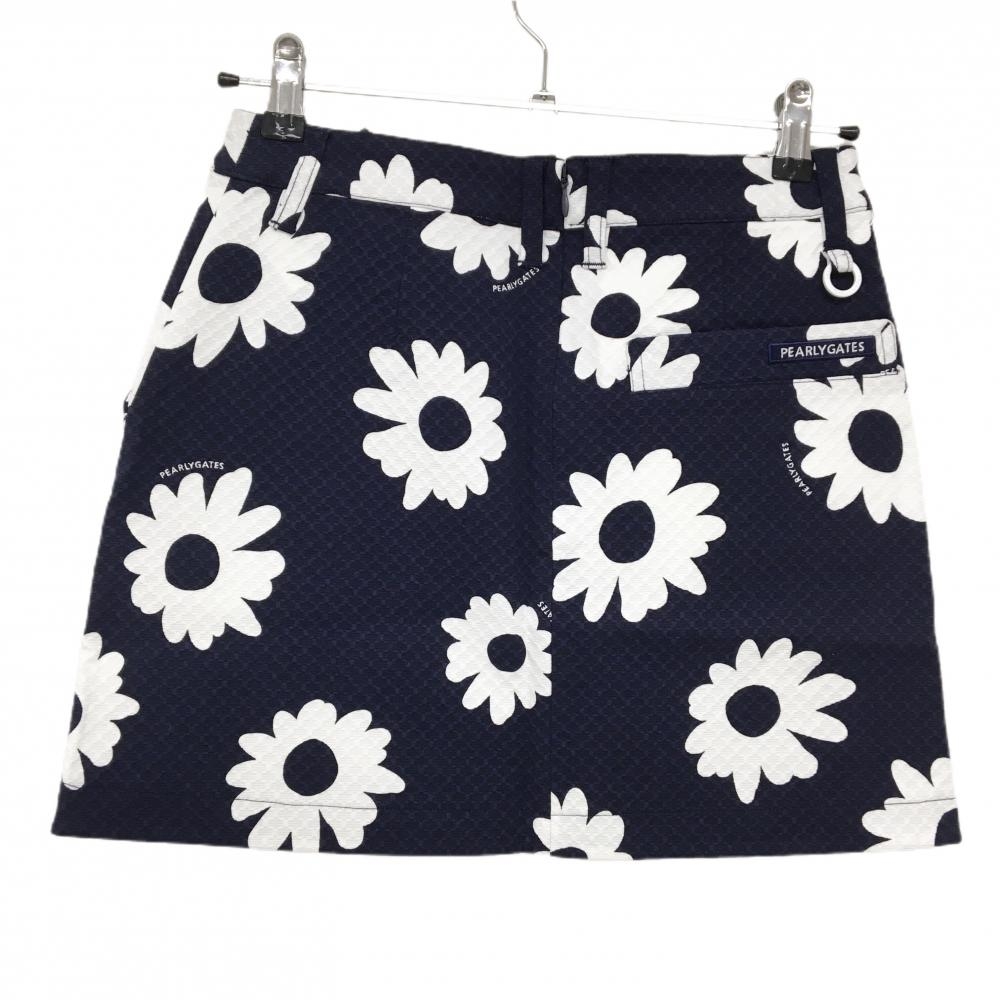 【新品】パーリーゲイツ スカート ネイビー×白 花柄 地模様 ロゴ刺しゅう レディース 0(S) ゴルフウェア PEARLY GATES