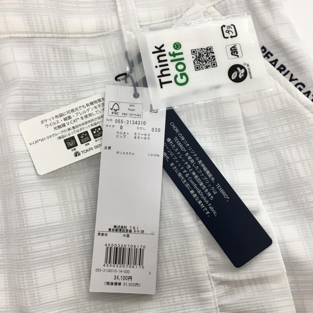 【新品】パーリーゲイツ スカート 白×ライトグレー チェック柄 フロントフリル 抗菌 消臭 レディース 0(S) ゴルフウェア PEARLY GATES