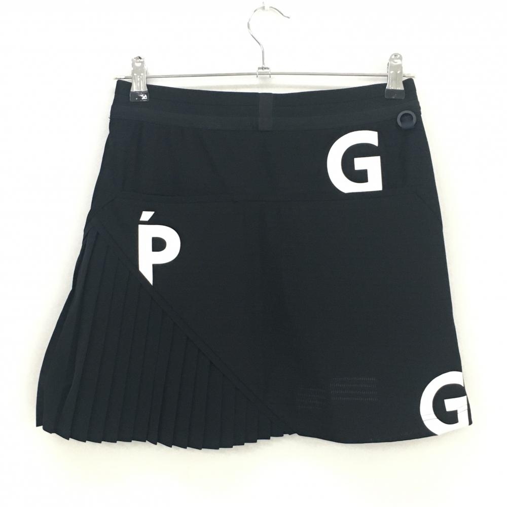 【新品】PGGパーリーゲイツ スカート 黒 一部プリーツ ウエストゴム 調節紐 ロゴプリント レディース 0(S) ゴルフウェア PEARLY GATES
