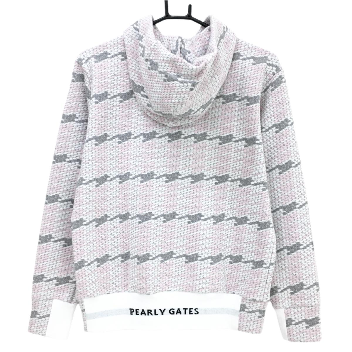 【新品】パーリーゲイツ ジップパーカー ピンク×グレー 総柄 ボーダー風 凸凹生地 袖ワッペン レディース 1(M) ゴルフウェア PEARLY GATES