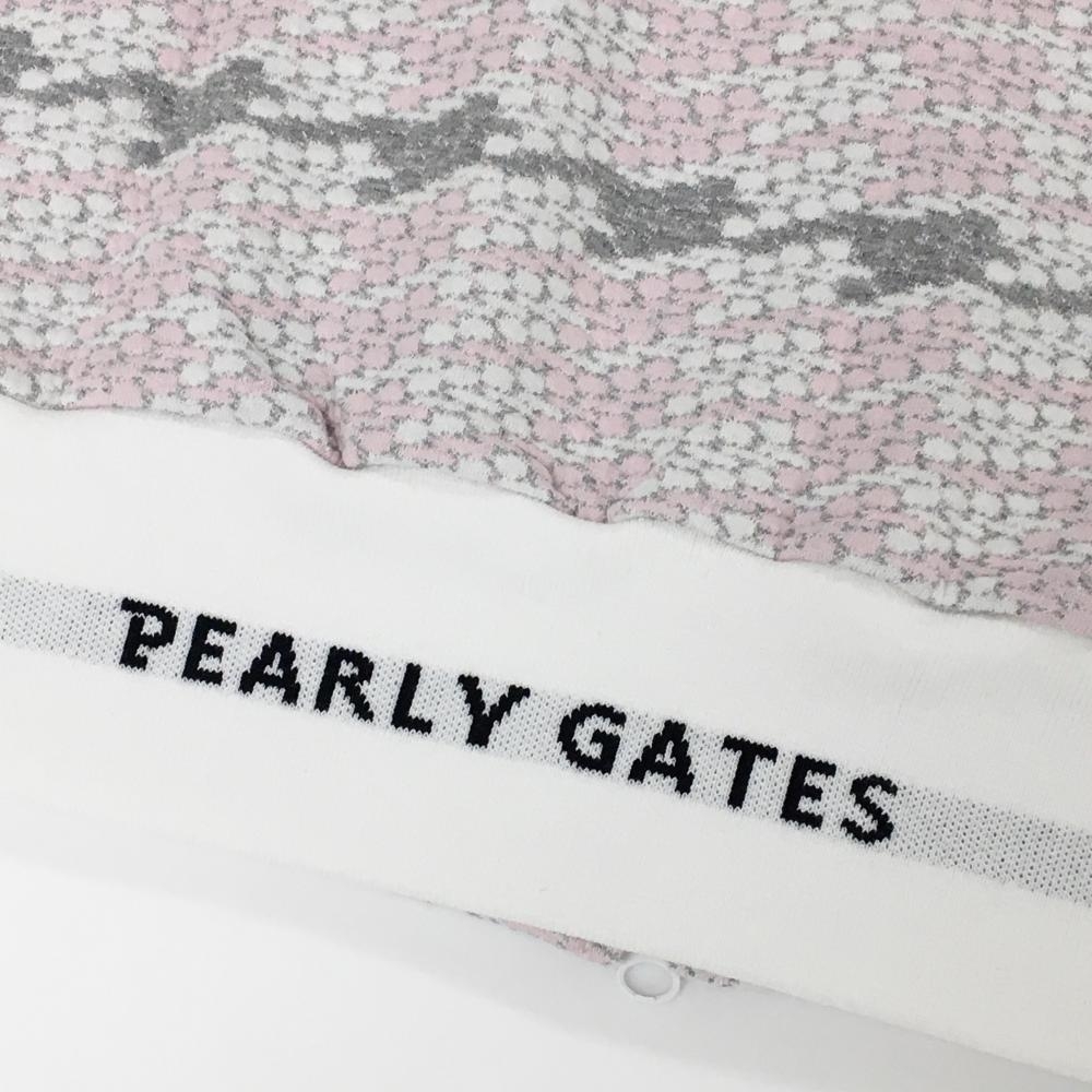 【新品】パーリーゲイツ ジップパーカー ピンク×グレー 総柄 ボーダー風 凸凹生地 袖ワッペン レディース 0(S) ゴルフウェア PEARLY GATES