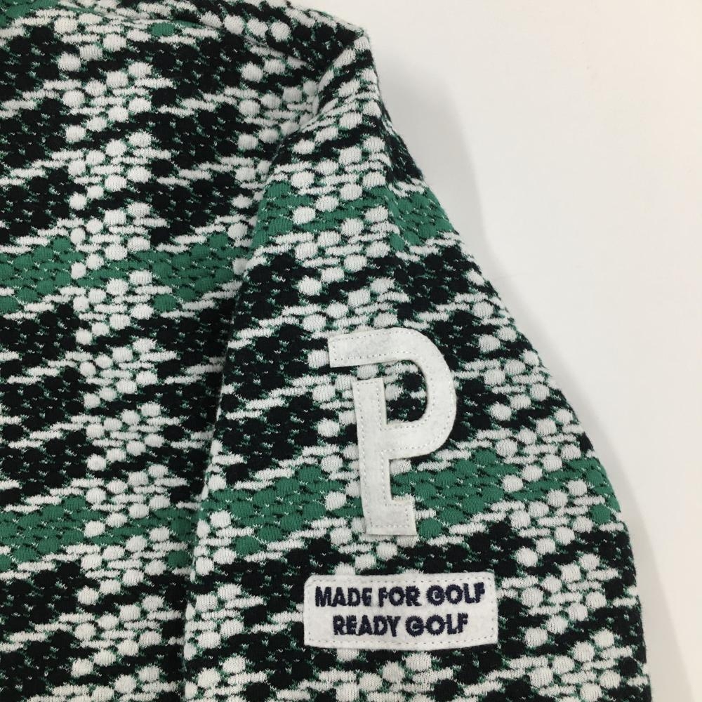 【新品】パーリーゲイツ ジップパーカー 黒×白×グリーン 総柄 凸凹生地 袖ワッペン レディース 1(M) ゴルフウェア PEARLY GATES