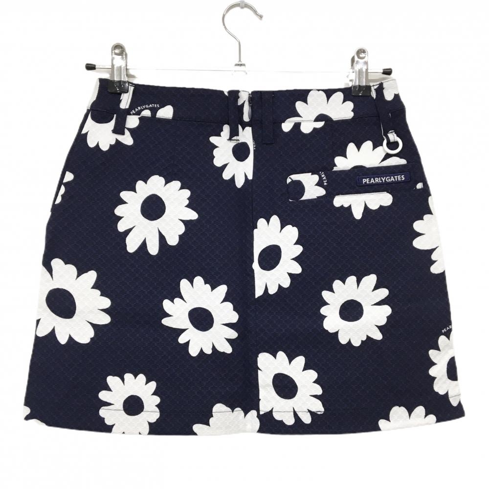 【新品】パーリーゲイツ スカート ネイビー×白 花柄 織生地 ロゴ刺しゅう レディース 0(S) ゴルフウェア PEARLY GATES