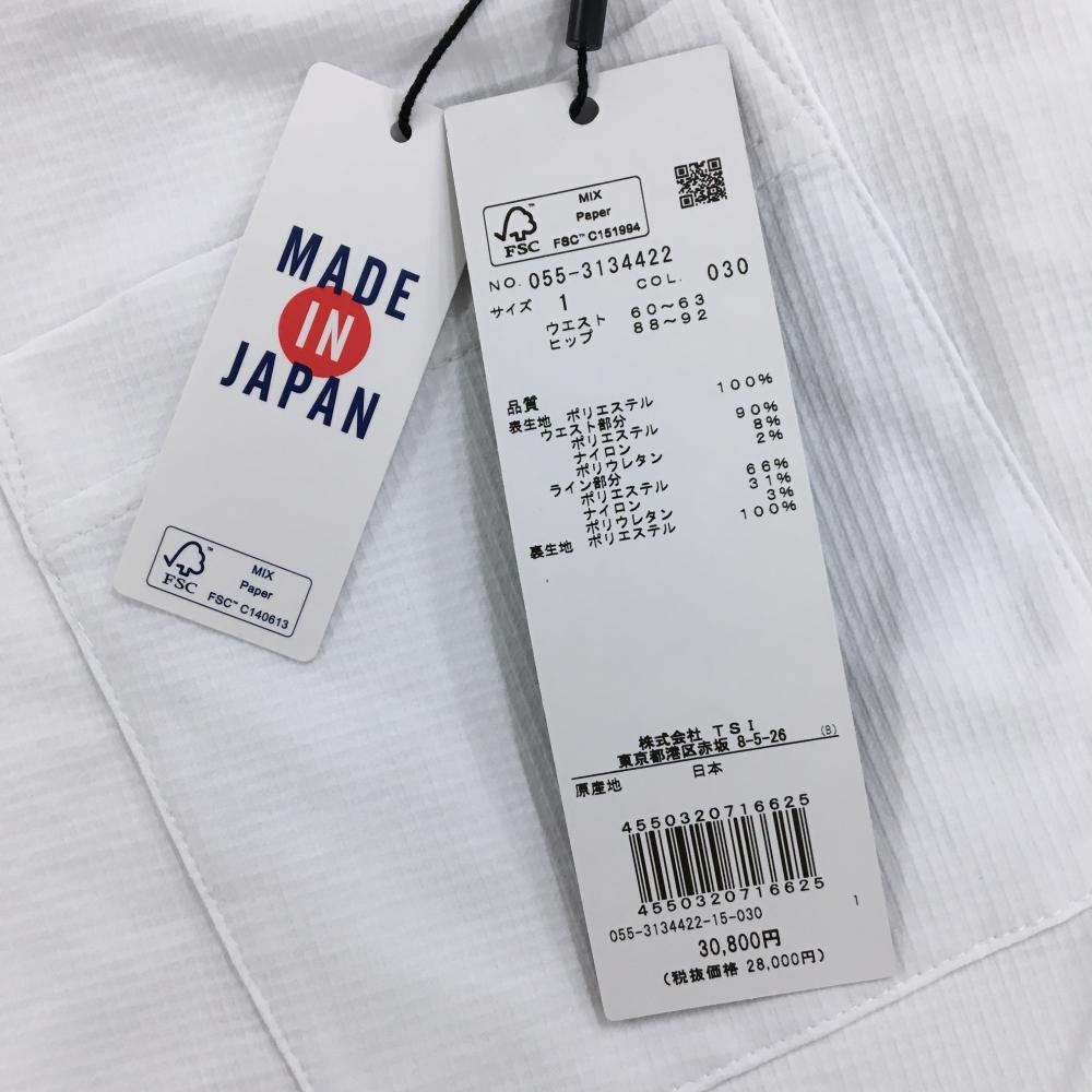 【新品】パーリーゲイツ スカート 白×黒 4ライン ウエストゴム 調節紐 裏地メッシュ レディース 1(M) ゴルフウェア PEARLY GATES