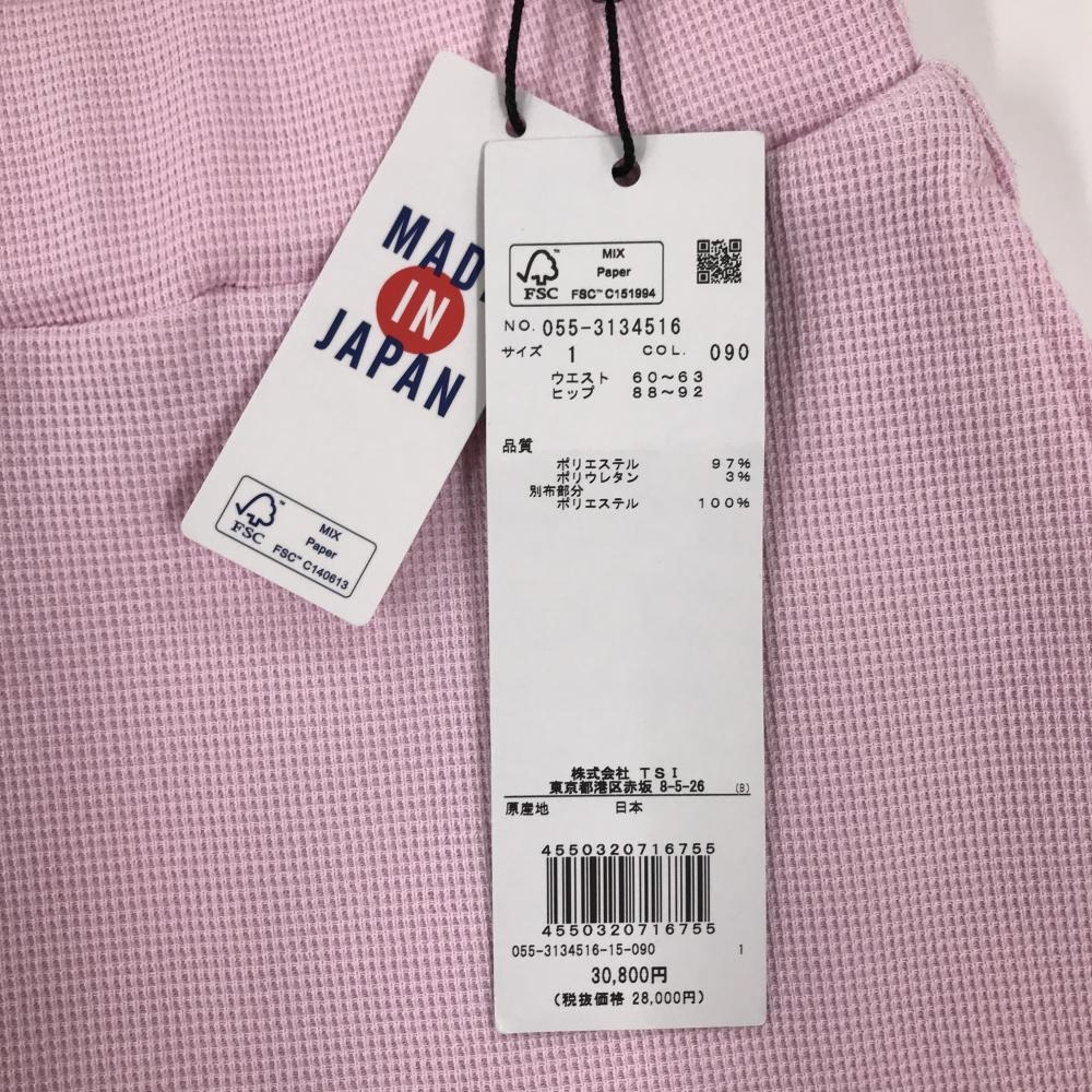 【新品】パーリーゲイツ スカート ピンク 裾プリーツ 織生地 ウエストゴム ロゴ刺しゅう レディース 1(M) ゴルフウェア PEARLY GATES