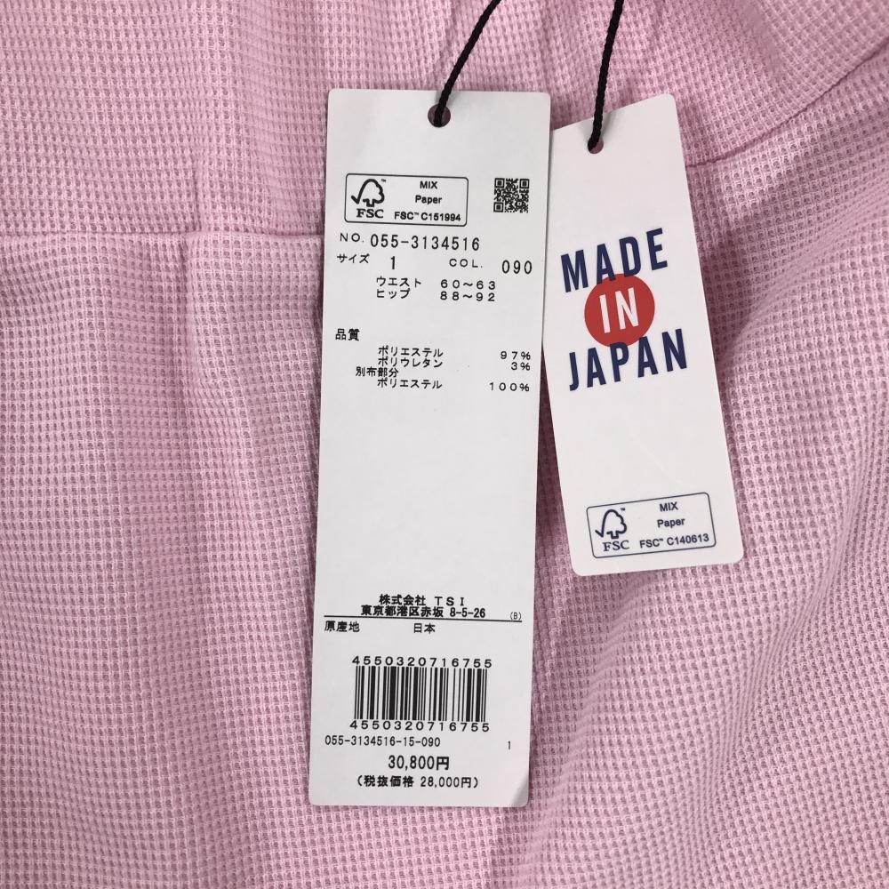 【新品】パーリーゲイツ スカート ピンク 裾プリーツ 織生地 ウエストゴム ロゴ刺しゅう レディース 1(M) ゴルフウェア PEARLY GATES