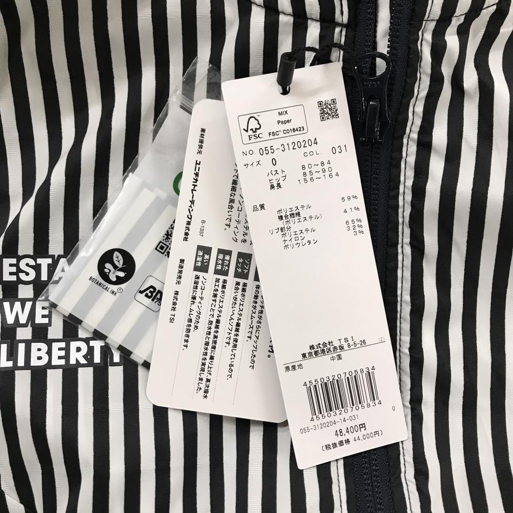 【新品】パーリーゲイツ ジャケット 白×ネイビー ストライプ ロゴプリント 透湿防水 レディース 0(S) ゴルフウェア PEARLY GATES