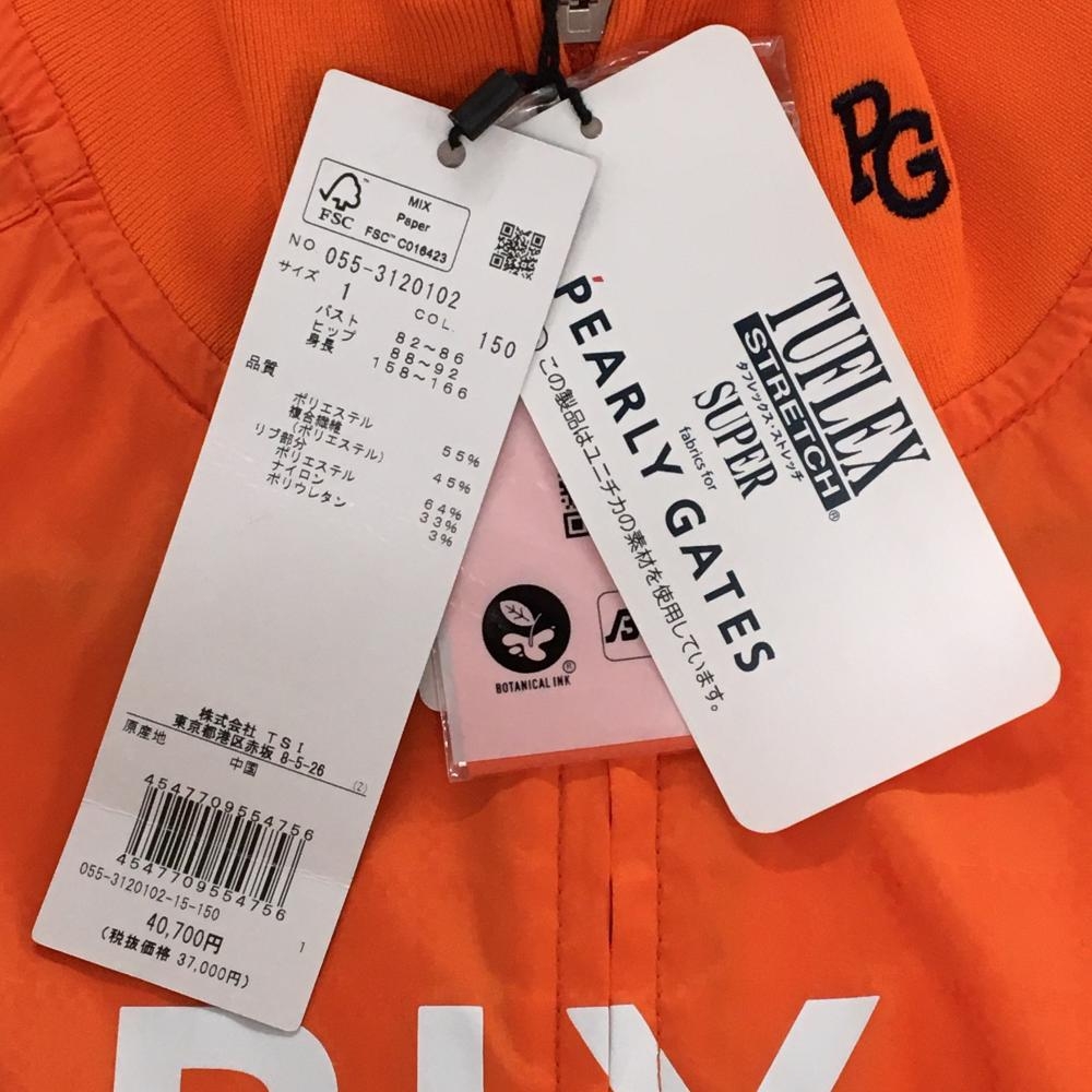 【新品】パーリーゲイツ ジャケット オレンジ×白 格子柄地模様 ロゴプリント 透湿防水 レディース 1(M) ゴルフウェア PEARLY GATES