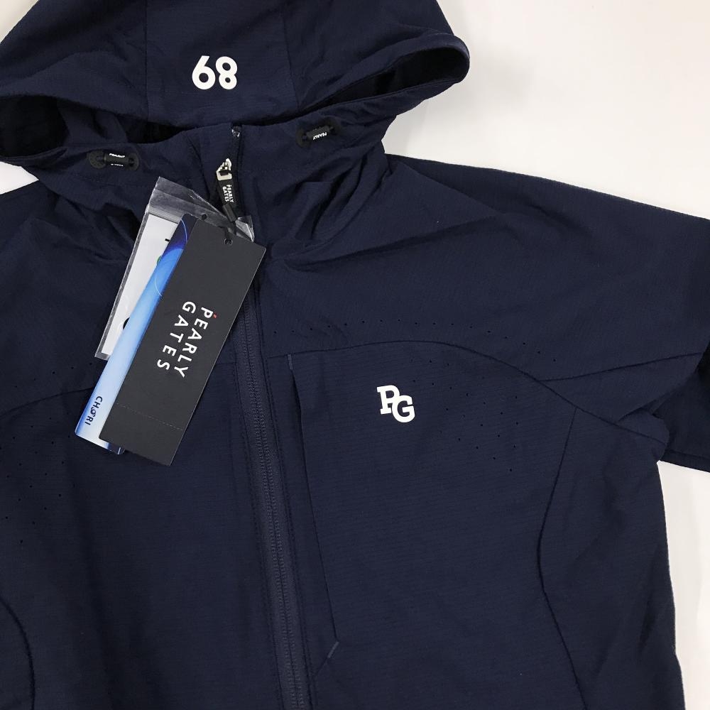 【新品】パーリーゲイツ フード付き長袖ワンピース ネイビー×白 ロゴプリント 一部パンチング レディース 0(S) ゴルフウェア PEARLY GATES