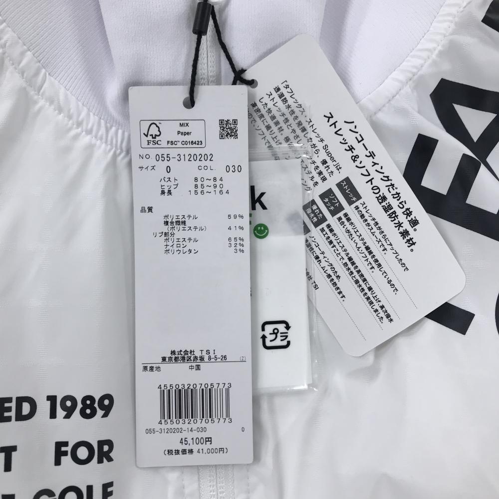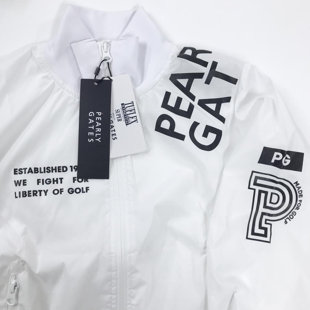 【新品】パーリーゲイツ ジャケット 白×ダークネイビー 格子柄地模様 ロゴプリント レディース 0(S) ゴルフウェア PEARLY GATES