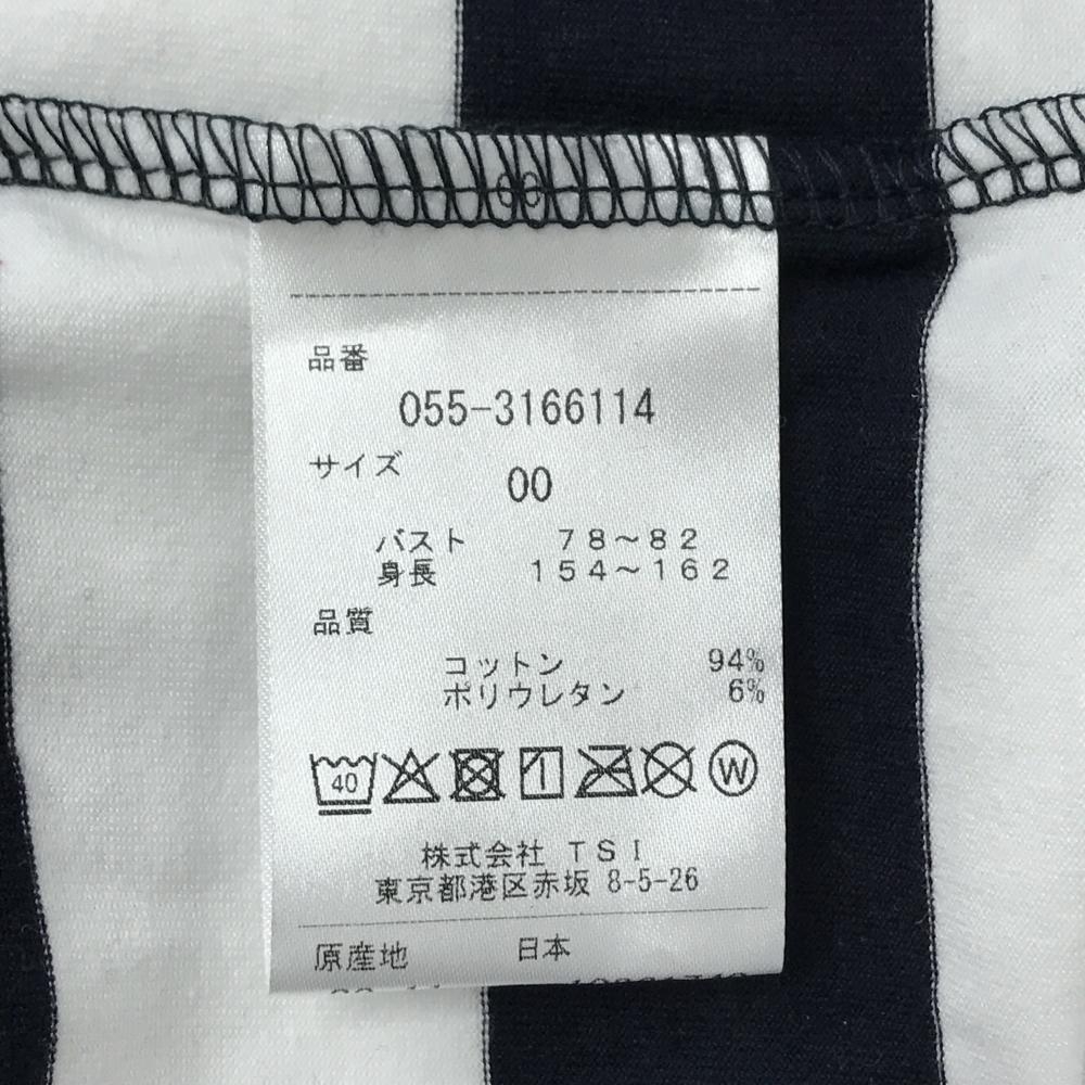 【新品】パーリーゲイツ 長袖ハイネックシャツ 白×ダークネイビー ボーダー ロゴプリント レディース 00(XS) ゴルフウェア PEARLY GATES