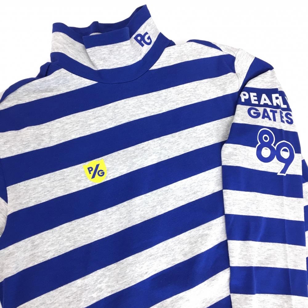 【新品】パーリーゲイツ 長袖ハイネックシャツ ブルー×杢ネイビー ボーダー ロゴプリント レディース 00(XS) ゴルフウェア PEARLY GATES