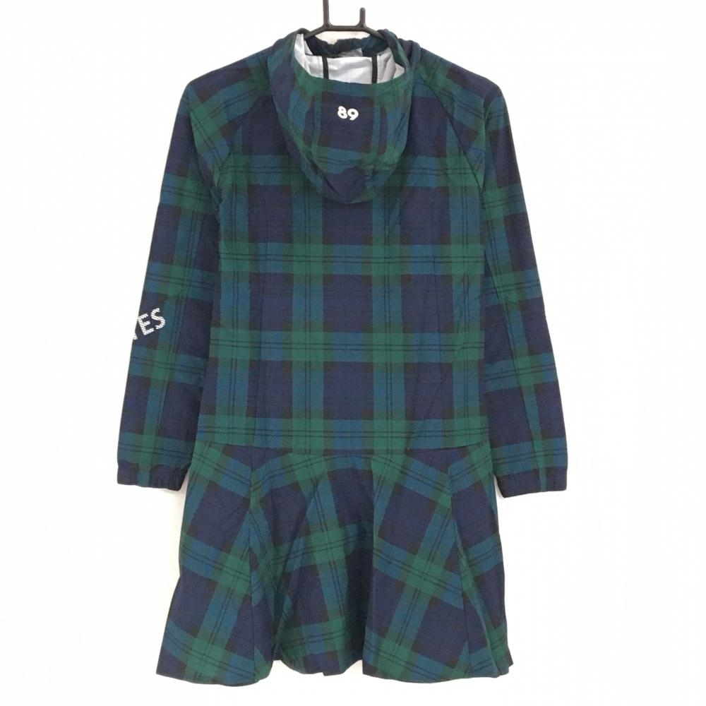 【新品】パーリーゲイツ フード付き長袖ワンピース グリーン×ネイビー チェック柄 レディース 0(S) ゴルフウェア PEARLY GATES