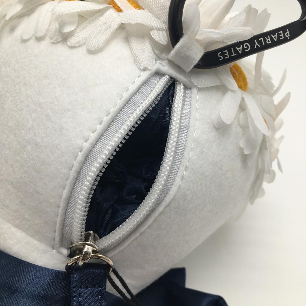 【新品】パーリーゲイツ ボールポーチ 白×ネイビー ブーケ型 リボン カラビナ付き ボールケース ゴルフ PEARLY GATES