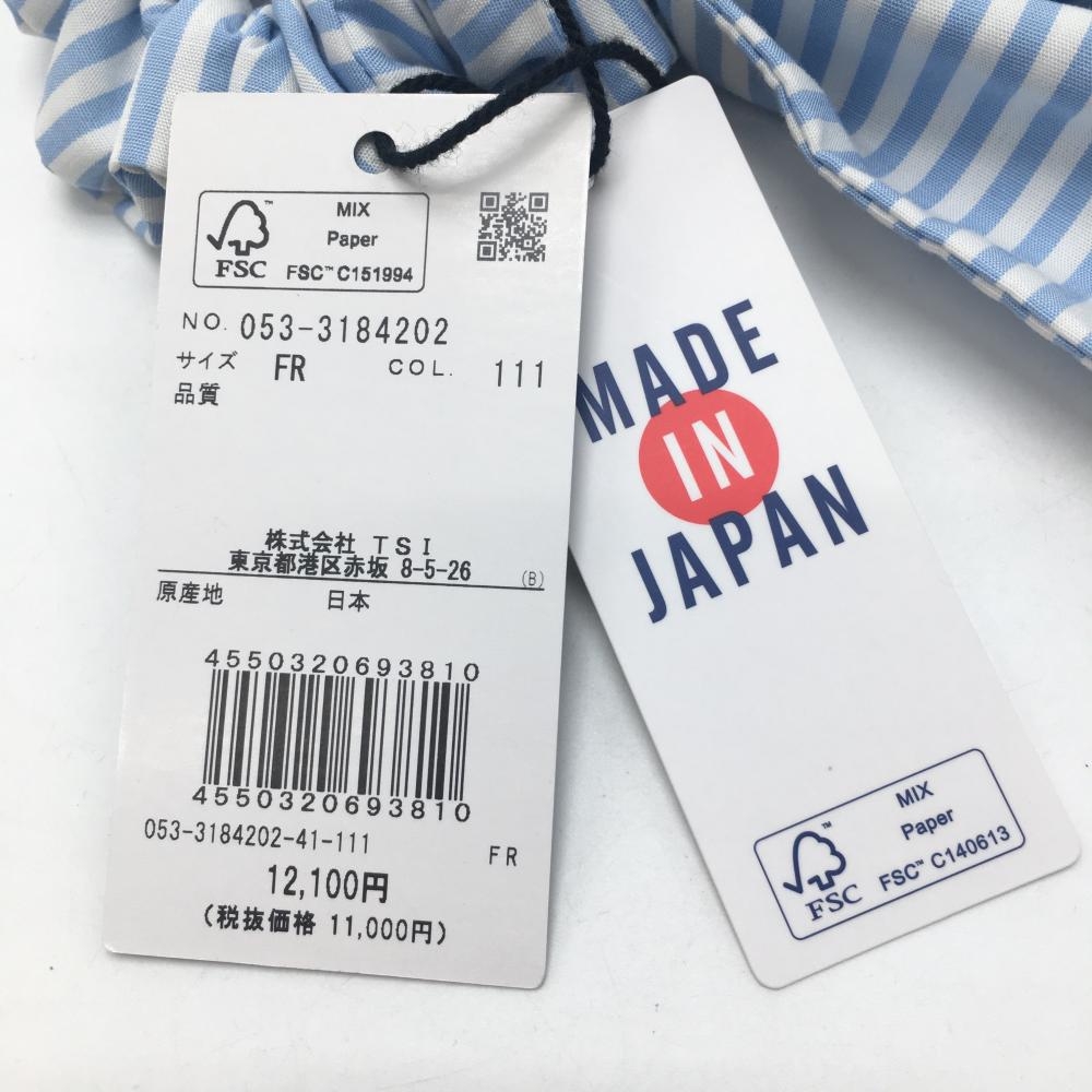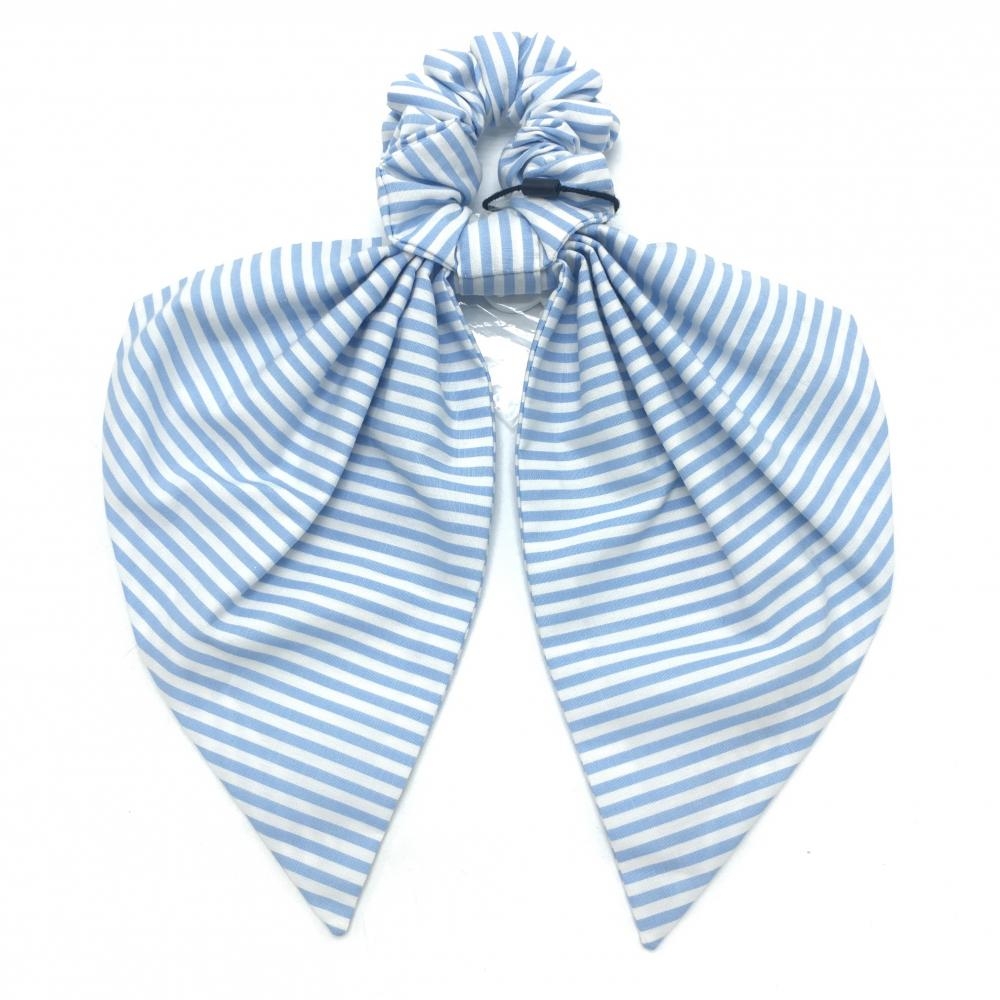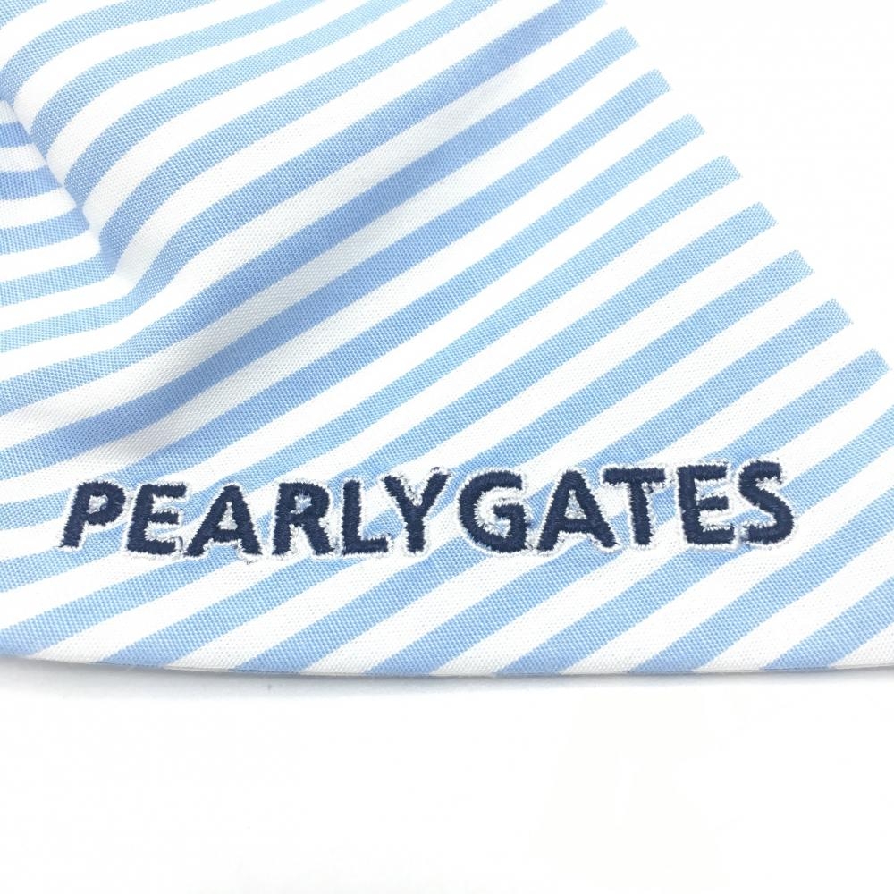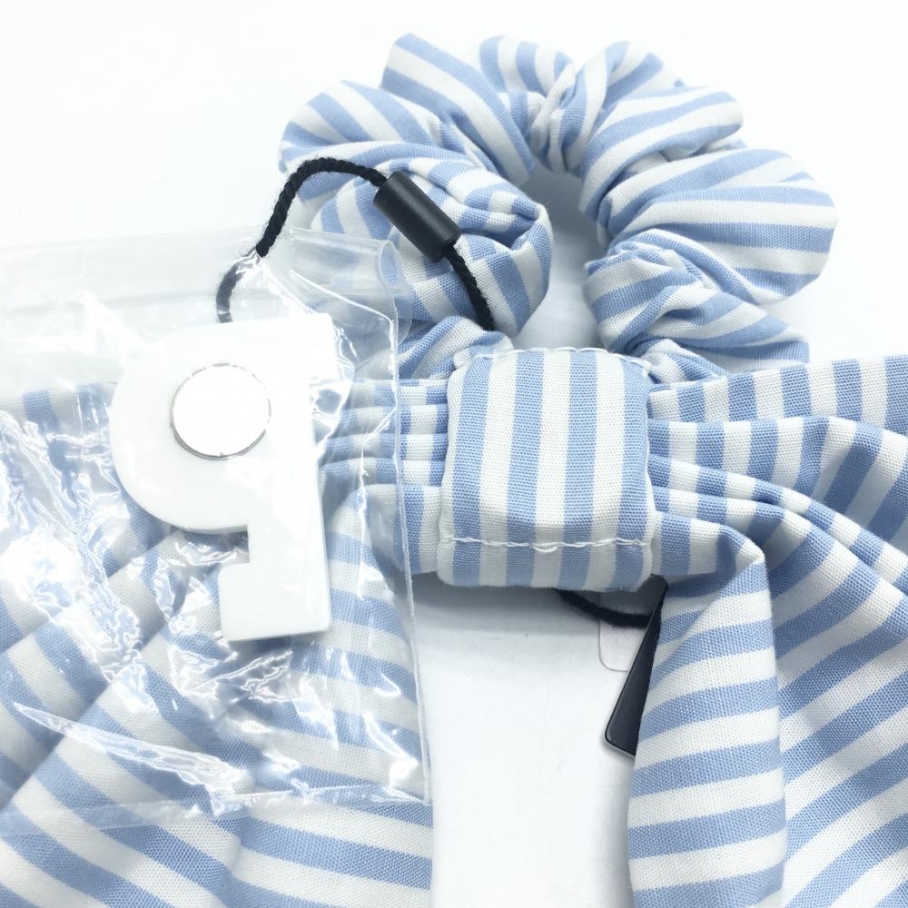 【新品】パーリーゲイツ ヘアアクセサリー 白×ライトブルー ボーダー マーカー付きヘアリボン レディース FR ゴルフウェア PEARLY GATES