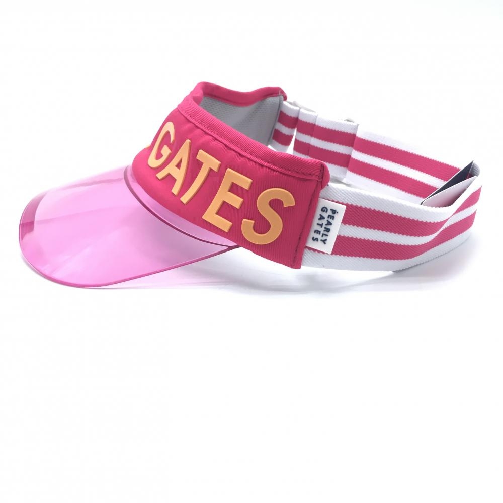 【新品】パーリーゲイツ サンバイザー レッドピンク×オレンジ つばクリア素材 立体ロゴ レディース FR ゴルフウェア PEARLY GATES