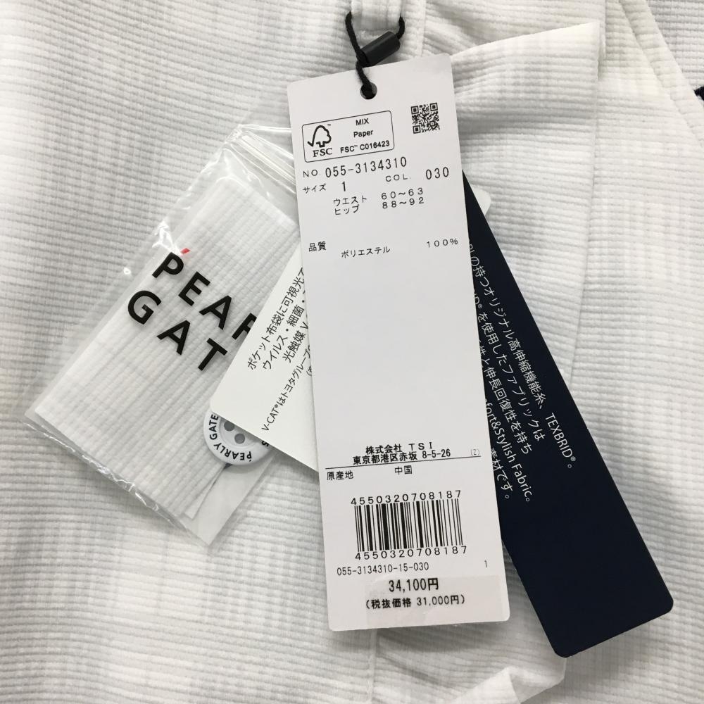 【新品】パーリーゲイツ スカート 白×ライトグレー チェック柄 一部フリル ロゴ刺しゅう レディース 1(M) ゴルフウェア PEARLY GATES