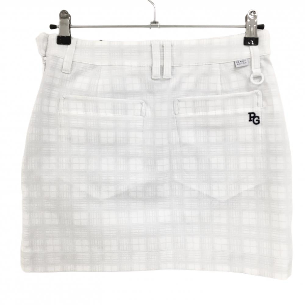【新品】パーリーゲイツ スカート 白×ライトグレー チェック柄 一部フリル ロゴ刺しゅ レディース 1 ゴルフウェア PEARLY GATES