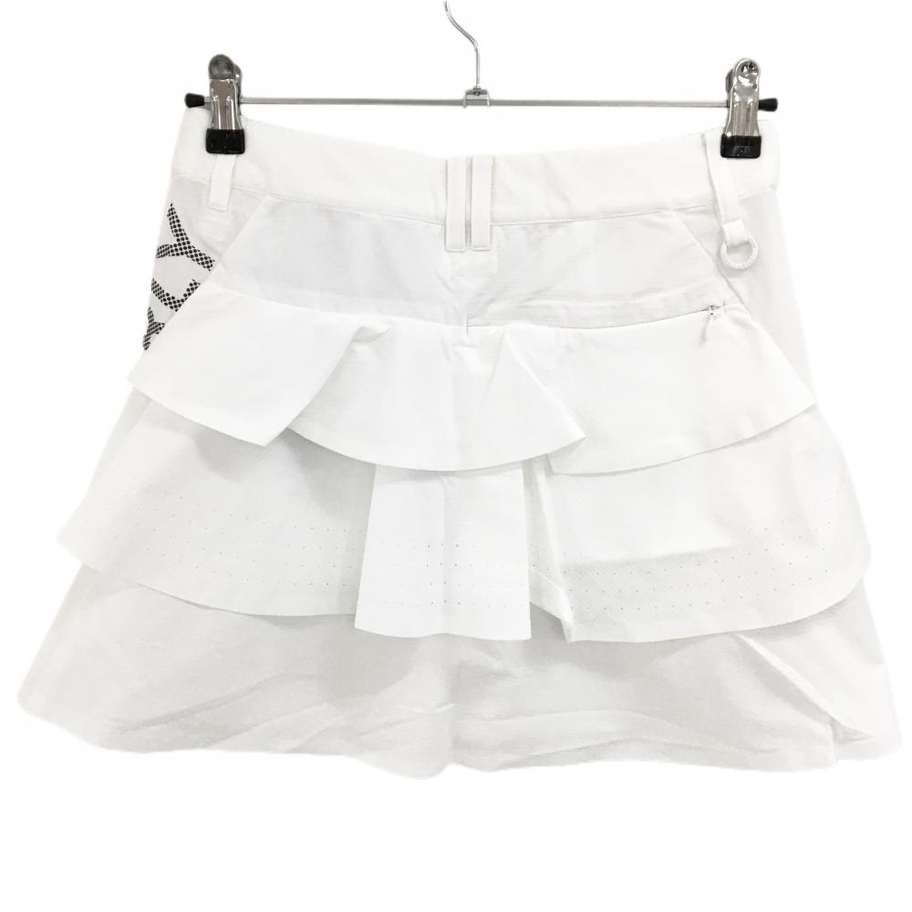 【新品】パーリーゲイツ スカート 白×黒 格子柄織生地 後ろフリル 一部パンチング レディース 1(M) ゴルフウェア PEARLY GATES