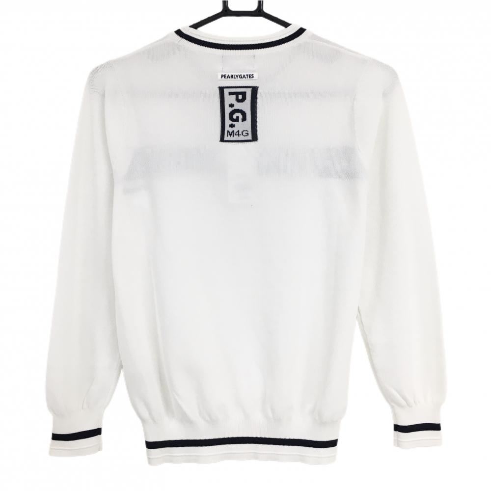 【新品】パーリーゲイツ セーター 白×黒 フロントロゴ 薄手 ニット レディース 0(S) ゴルフウェア PEARLY GATES