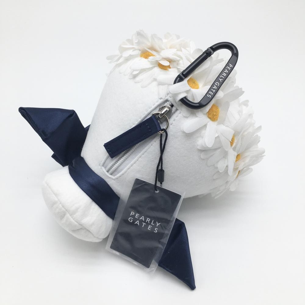【新品】パーリーゲイツ ボールポーチ 白×ネイビー ブーケ型 リボン カラビナ付き ボールケース ゴルフ PEARLY GATES