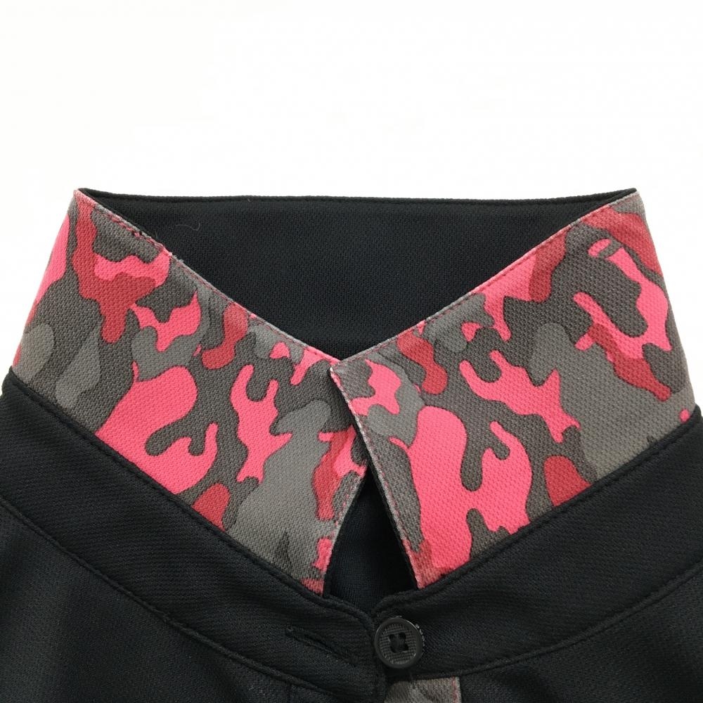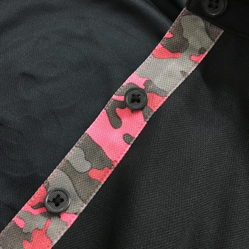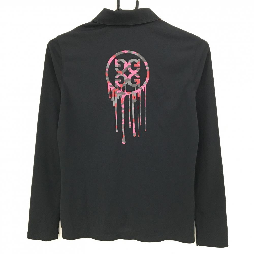 【美品】ジーフォア 長袖ポロシャツ 黒×ピンク ロゴ・襟裏カモフラ 迷彩 レディース 38(M) ゴルフウェア G/FORE