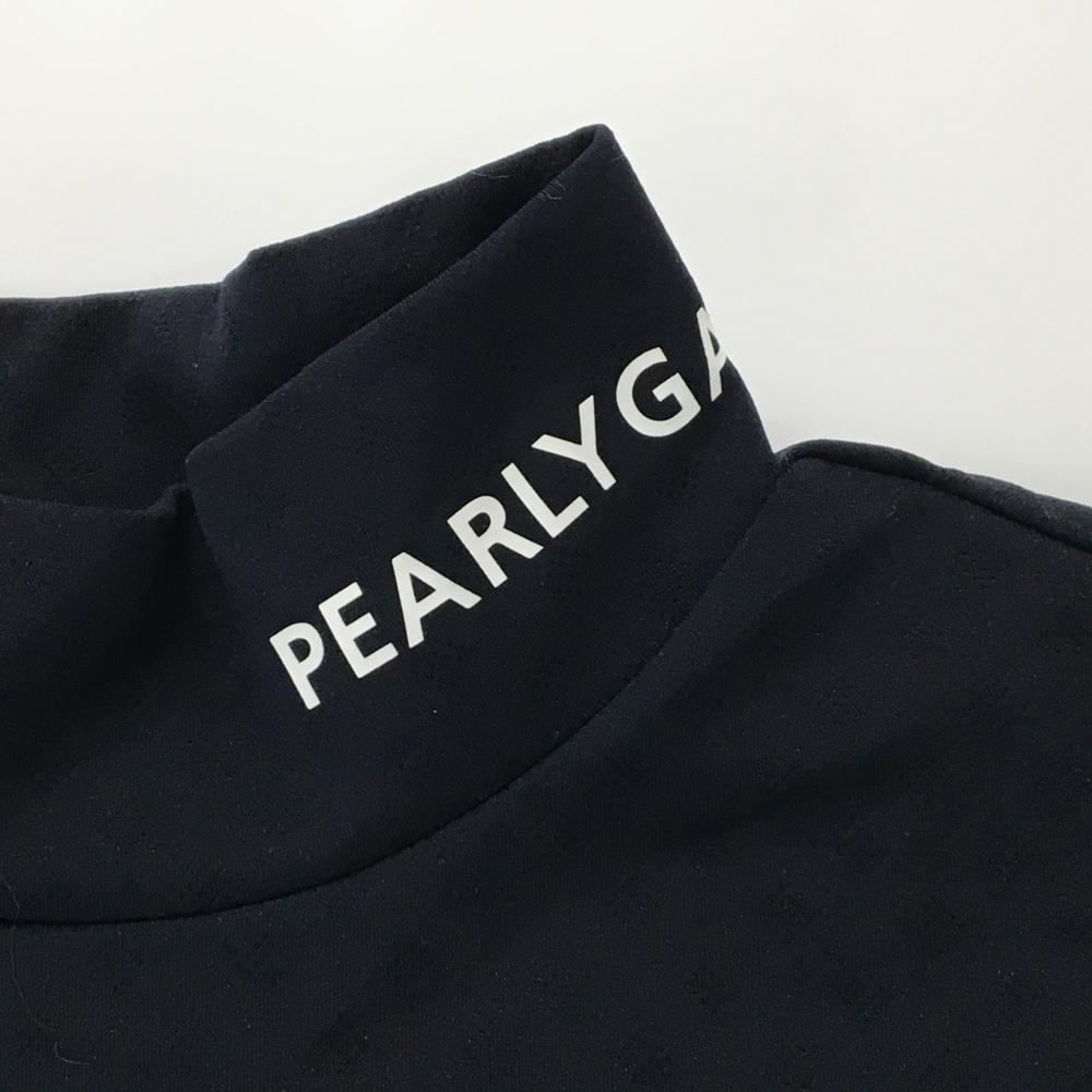 【超美品】パーリーゲイツ 長袖ハイネックシャツ ダークネイビー ロゴ白 織生地 レディース 2(L) ゴルフウェア PEARLY GATES