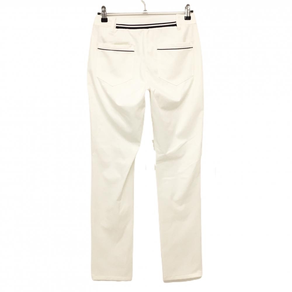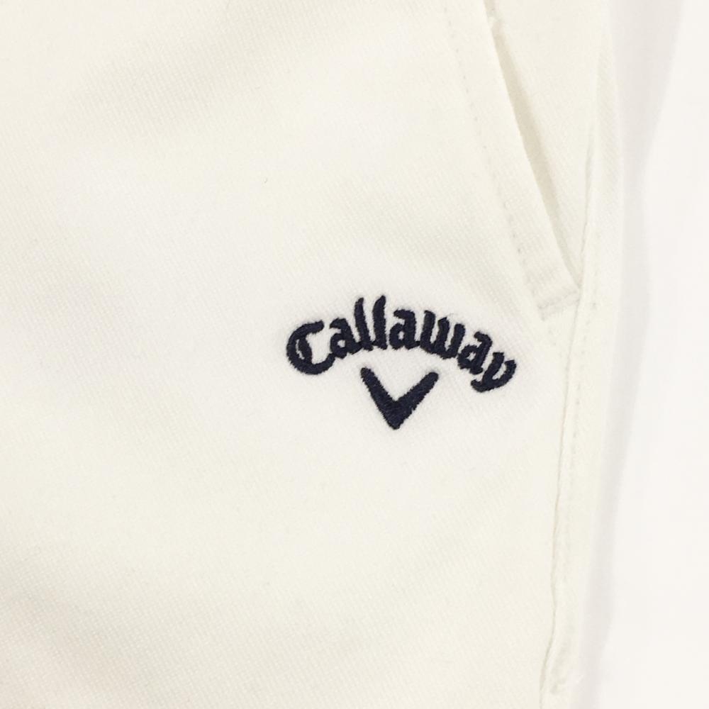 【美品】キャロウェイ パンツ 白 ロゴネイビー ウエスト一部ゴム ストレッチ レディース L ゴルフウェア Callaway