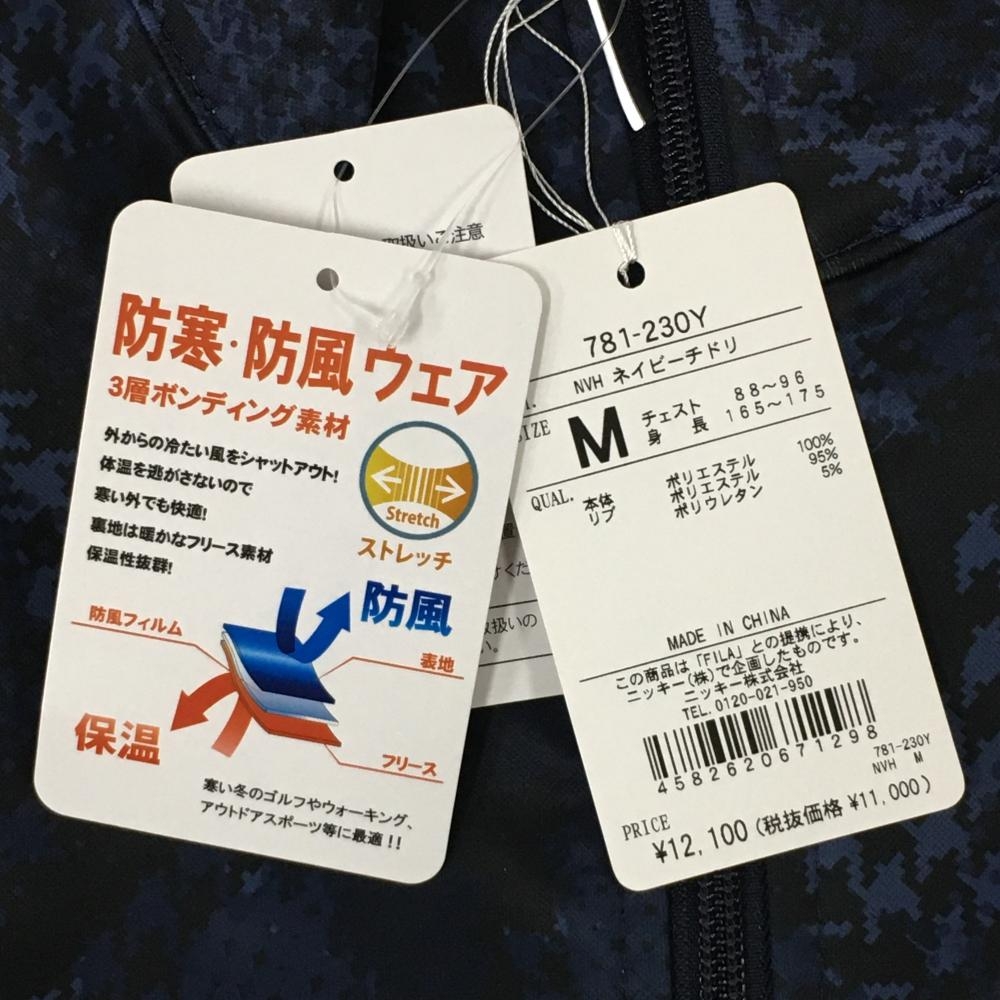 【新品】フィラゴルフ ブルゾン ネイビー×黒 千鳥格子風 裏微起毛 防風 防寒 メンズ M ゴルフウェア FILA GOLF