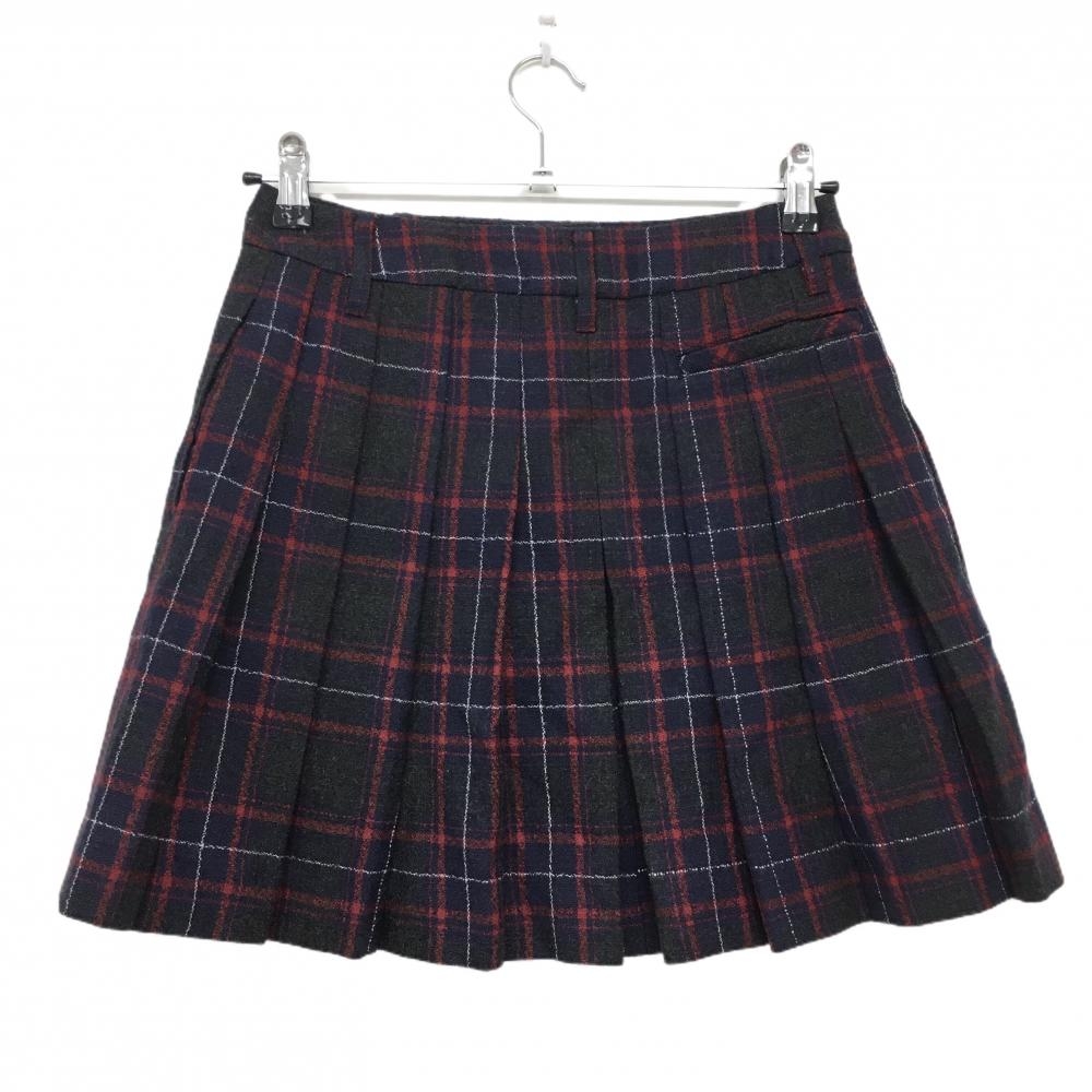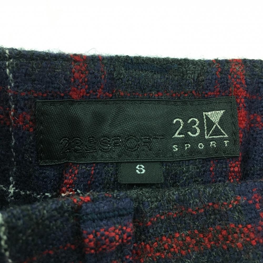 【美品】23区スポール スカート ネイビー×レッド チェック 一部プリーツ ウール100% 裏地付 レディース S ゴルフウェア 23区
