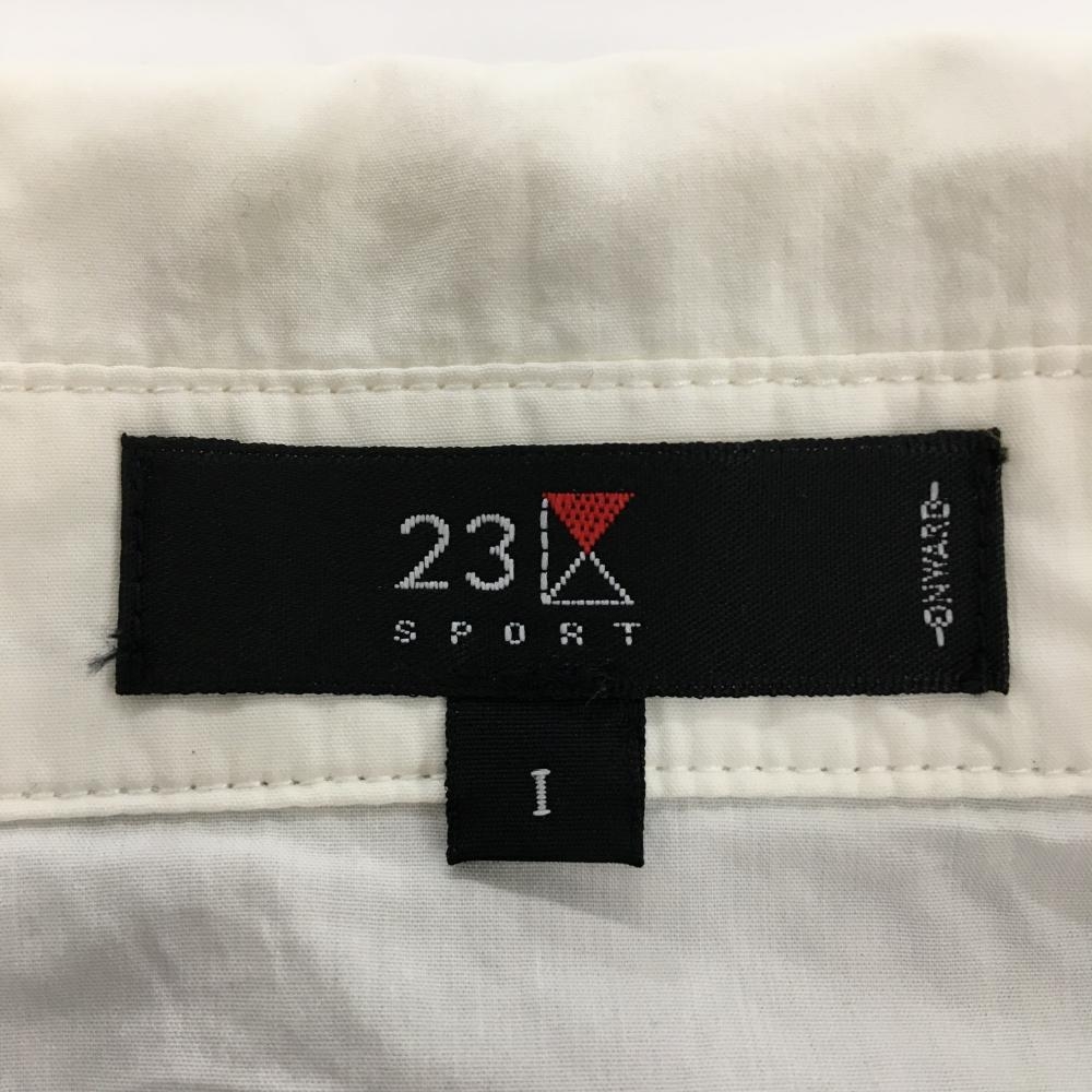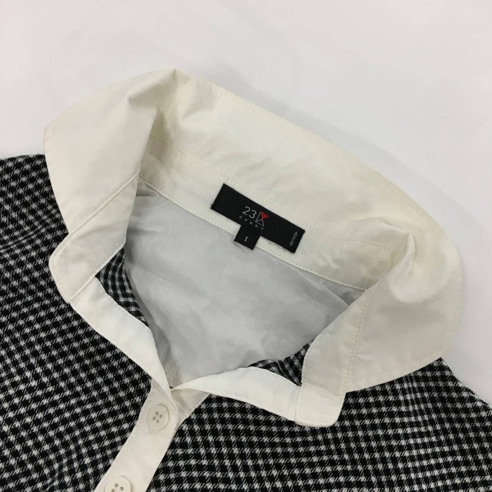 【美品】23区スポーツ 長袖ポロシャツ 白×黒 斜め格子柄 スキッパー風 レディース I(M) ゴルフウェア 23区