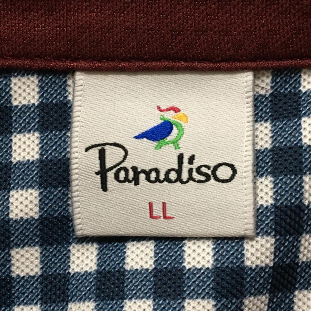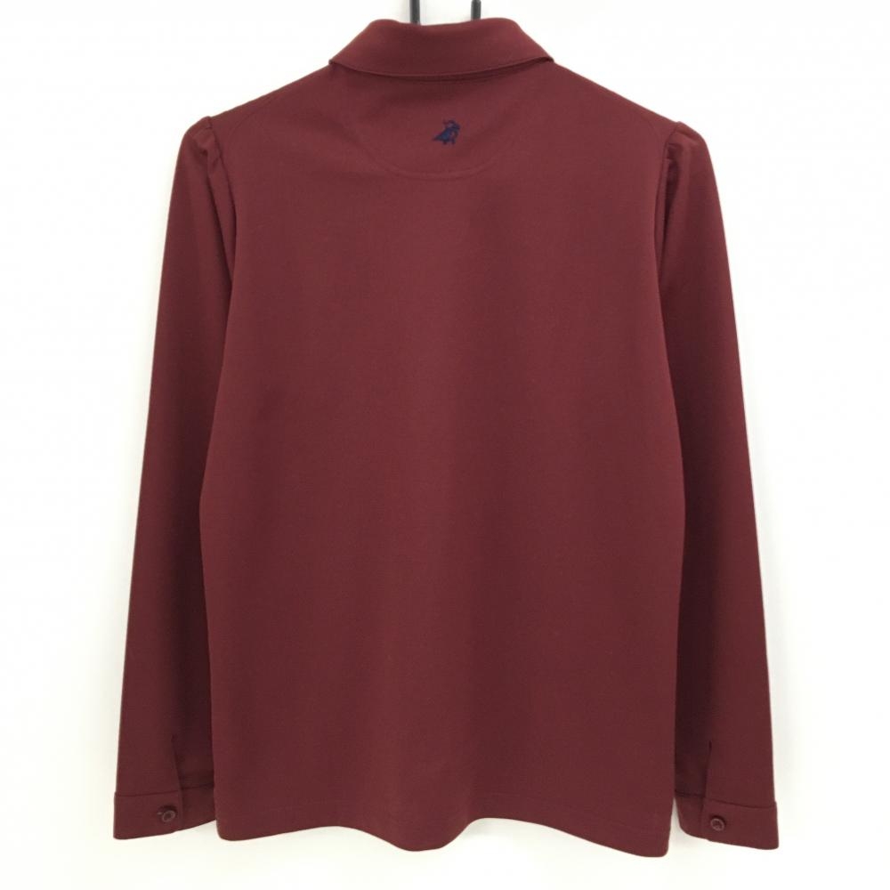 【超美品】パラディーゾ 長袖ポロシャツ ボルドー ドット柄地模様 前立てフリル ロゴスパンコール レディース LL ゴルフウェア Paradiso