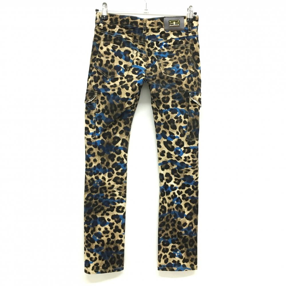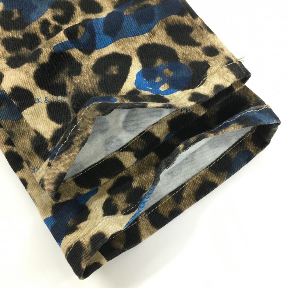 【美品】マークアンドロナ カーゴパンツ ベージュ×黒 レオパード ヒョウ柄 スカル総柄 レディース S ゴルフウェア MARK&LONA